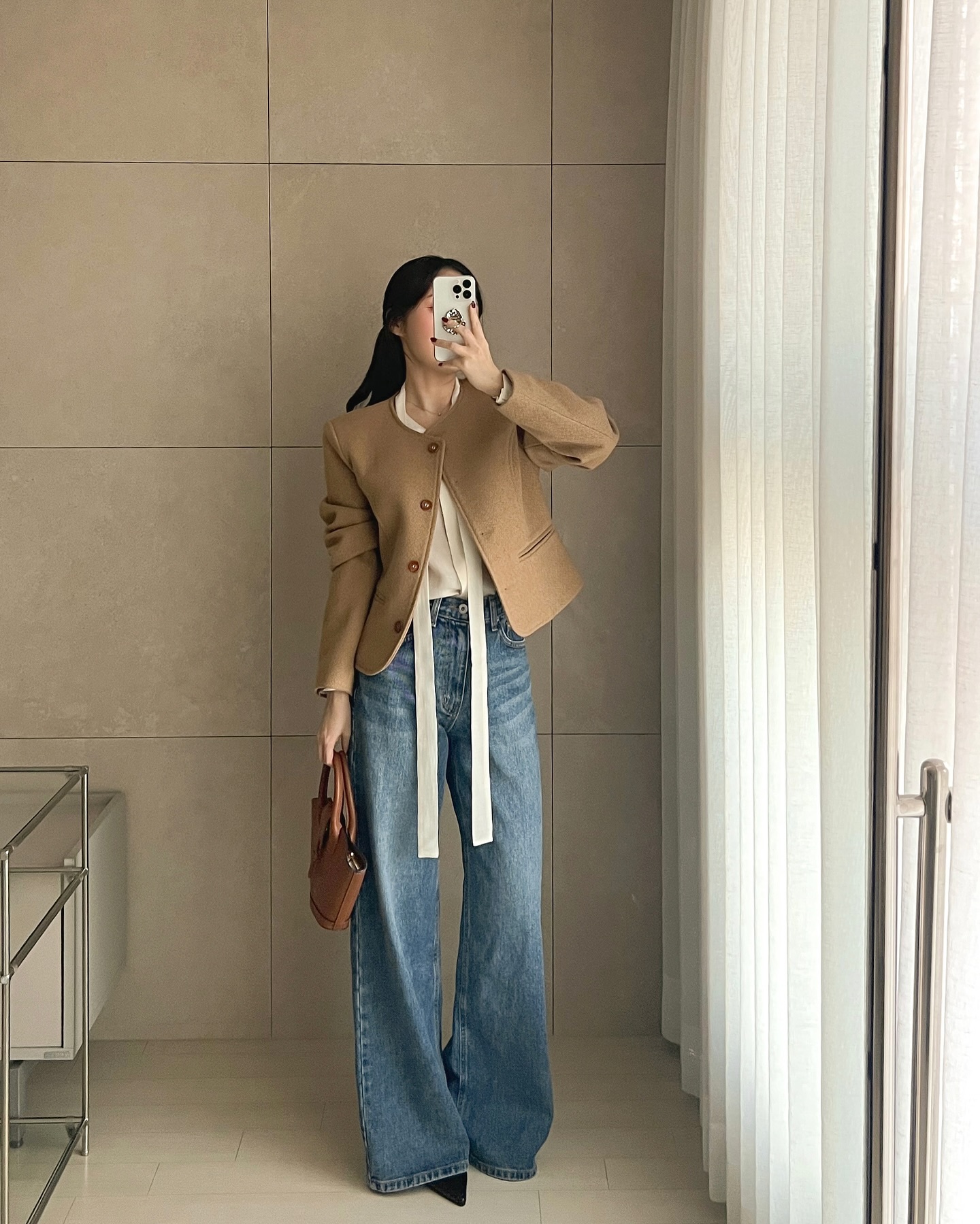 Để outfit trông thời thượng, bạn có thể chọn áo khoác ngắn màu đen hoặc các màu trung tính khác, kết hợp cùng quần ống rộng. Hoàn thiện bằng một đôi giày sneaker hoặc boots cổ ngắn, bạn sẽ có ngay set đồ vừa cá tính vừa dễ ứng dụng trong cuộc sống hằng ngày.