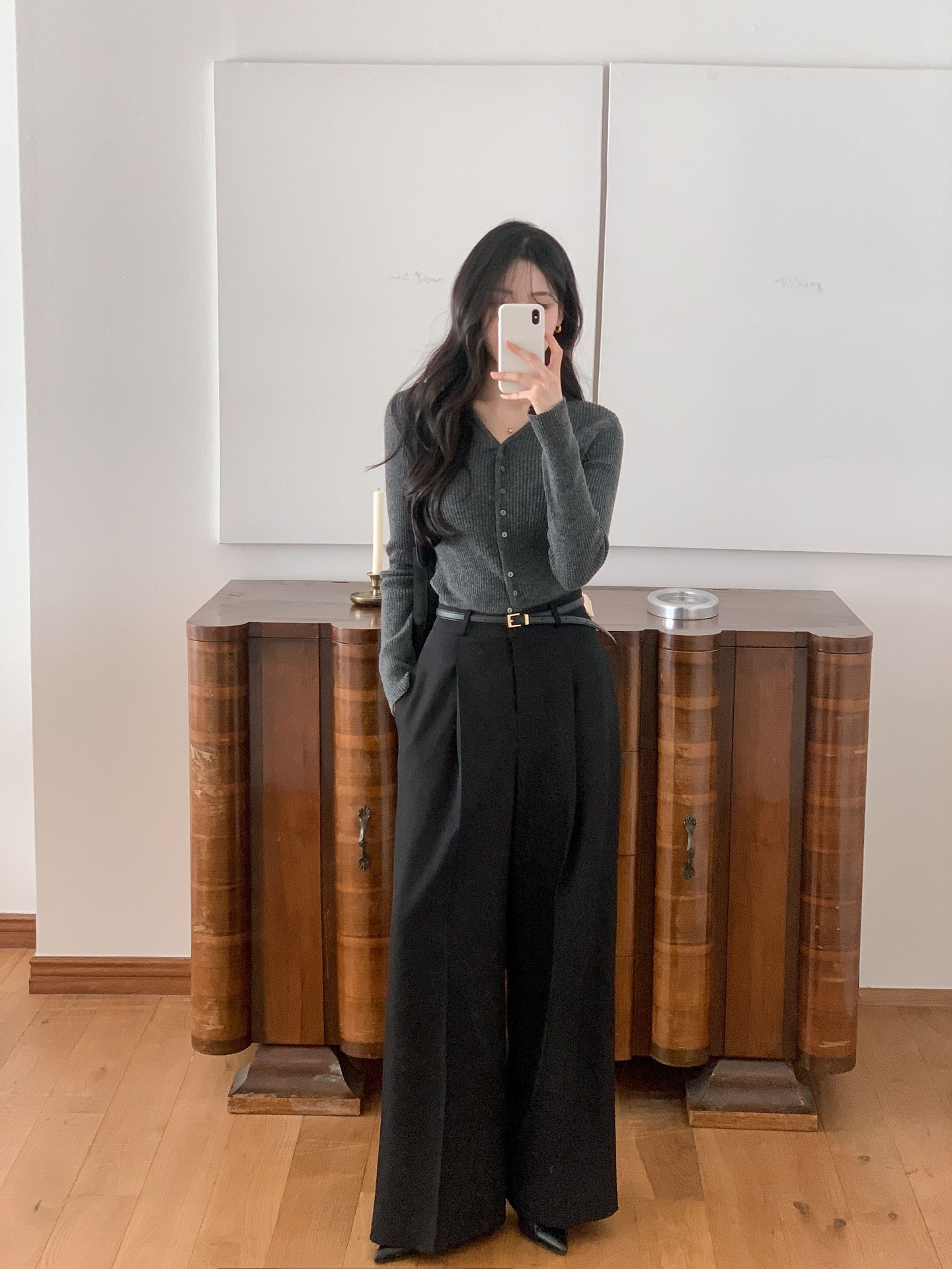 Áo cardigan mỏng là lựa chọn tuyệt vời cho những ngày đông không quá lạnh. Khi kết hợp với quần ống rộng, tổng thể trang phục trở nên mềm mại và phóng khoáng hơn. Bạn có thể mặc một chiếc áo thun ôm bên trong và khoác cardigan bên ngoài để tạo hiệu ứng layer nhẹ nhàng.