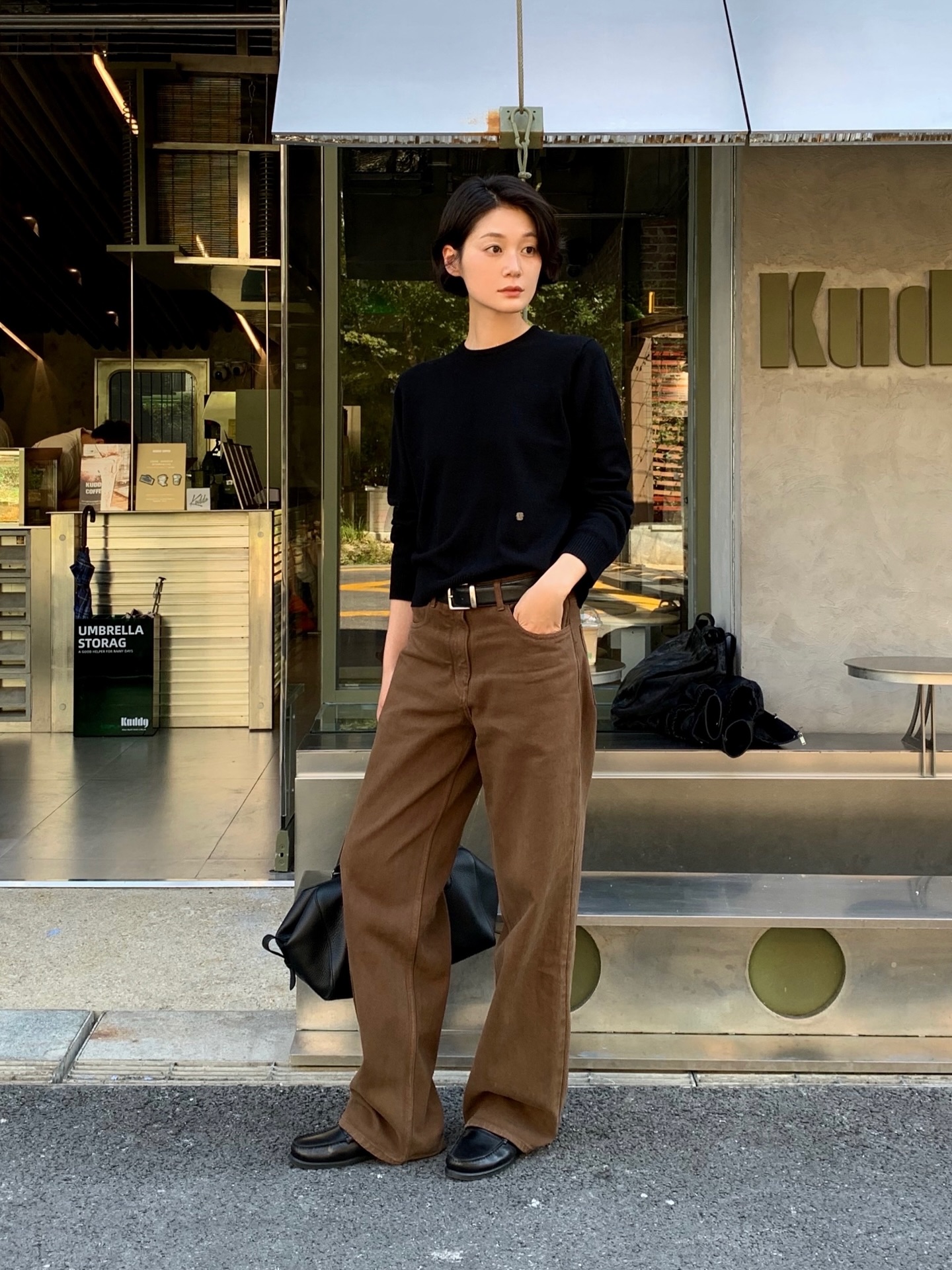 Với áo len cổ tròn, bạn có thể sơ vin một phần hoặc chỉnh dáng áo để tạo độ gọn ở phần eo, giúp outfit trông cân đối hơn. Nếu muốn nổi bật, hãy chọn áo có họa tiết nhỏ hoặc màu sắc tươi sáng như đỏ gạch, xanh olive, vàng mù tạt. Còn nếu bạn theo đuổi phong cách nhẹ nhàng, những tông màu trung tính luôn là lựa chọn an toàn.