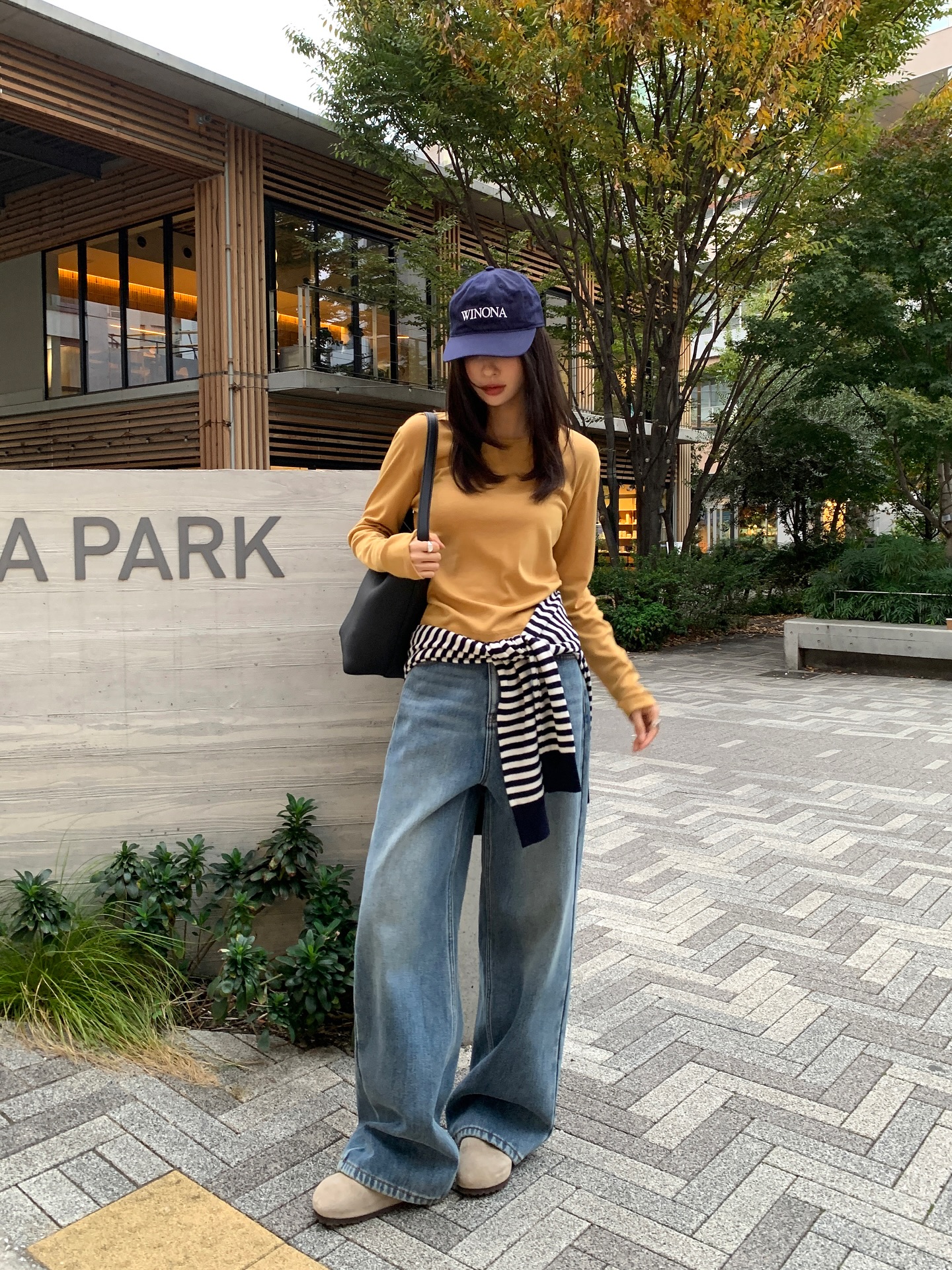 Dù là mùa đông, áo thun dài tay vẫn luôn có mặt trong tủ đồ của mọi nàng. Mỏng nhẹ, thoải mái và linh hoạt trong việc phối đồ, áo thun dài tay rất dễ kết hợp với quần ống rộng, tạo nên set đồ tối giản nhưng đầy cá tính.