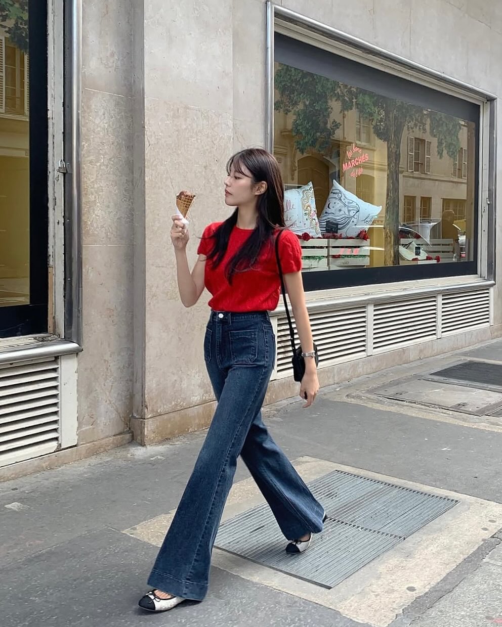 Một mẹo nhỏ là ưu tiên áo có độ ôm vừa phải để tạo sự cân đối với phần quần rộng. Thêm một đôi sandal quai mảnh hoặc giày loafer là bạn đã có ngay set đồ phù hợp cho cả đi làm lẫn đi cà phê cùng bạn bè.