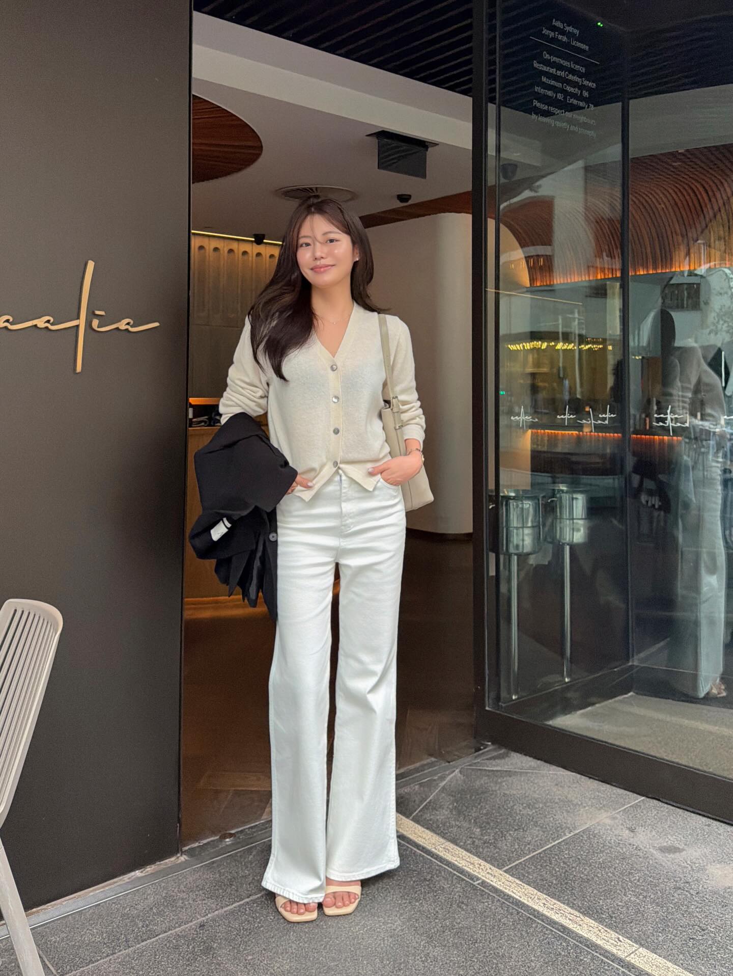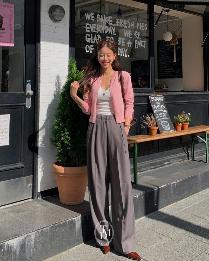 Khi diện cardigan cùng quần ống rộng, bạn có thể hoàn thiện set đồ bằng túi xách nhỏ và giày bệt hoặc sandal quai mảnh. Tổng thể mang lại cảm giác thanh thoát, nhẹ nhàng nhưng vẫn đủ nổi bật giữa nhịp sống năng động của mùa mới.
