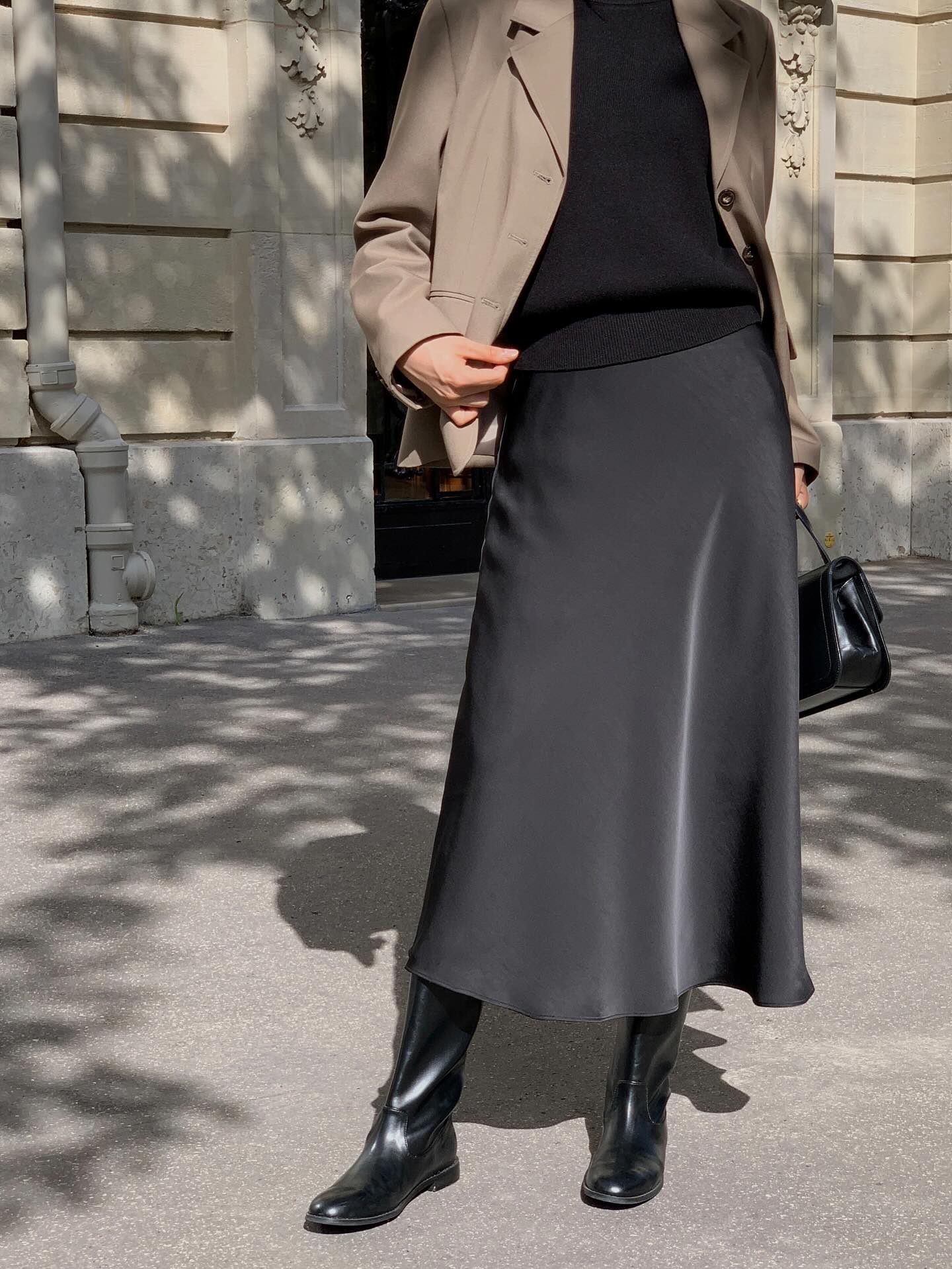 Điểm khác biệt của chân váy lụa năm 2026 nằm ở phom dáng gọn gàng hơn, ít chi tiết rườm rà. Váy thường có độ dài ngang bắp chân hoặc dài hơn một chút, màu sắc thiên về trung tính như be, nâu nhạt, xám, xanh olive hoặc pastel nhẹ. Chân váy lụa dễ phối cùng áo thun trơn, áo sơ mi rộng hay áo len mỏng, có thể mặc đi làm, đi chơi hoặc dự những buổi gặp gỡ nhẹ nhàng.