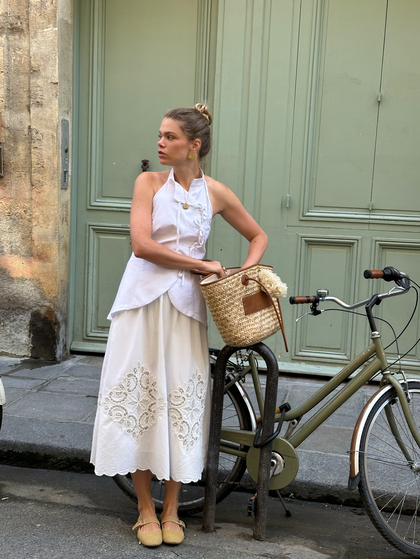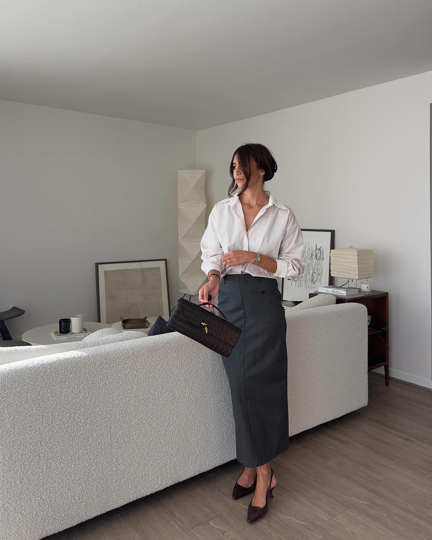 Khi kết hợp với váy, đặc biệt là váy lụa, váy slip dress hoặc váy midi, giày mule cao gót tạo nên vẻ ngoài vừa quyến rũ vừa tự nhiên. Đây là kiểu phối đồ thường thấy ở các quý cô người Pháp trong những buổi dạo phố hoặc gặp gỡ bạn bè.