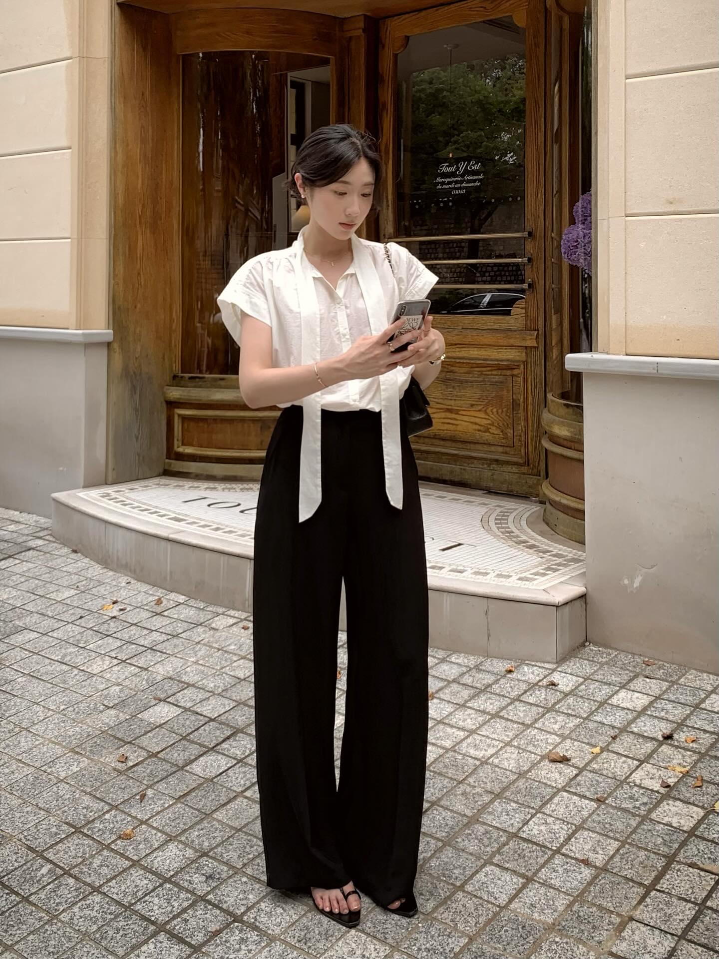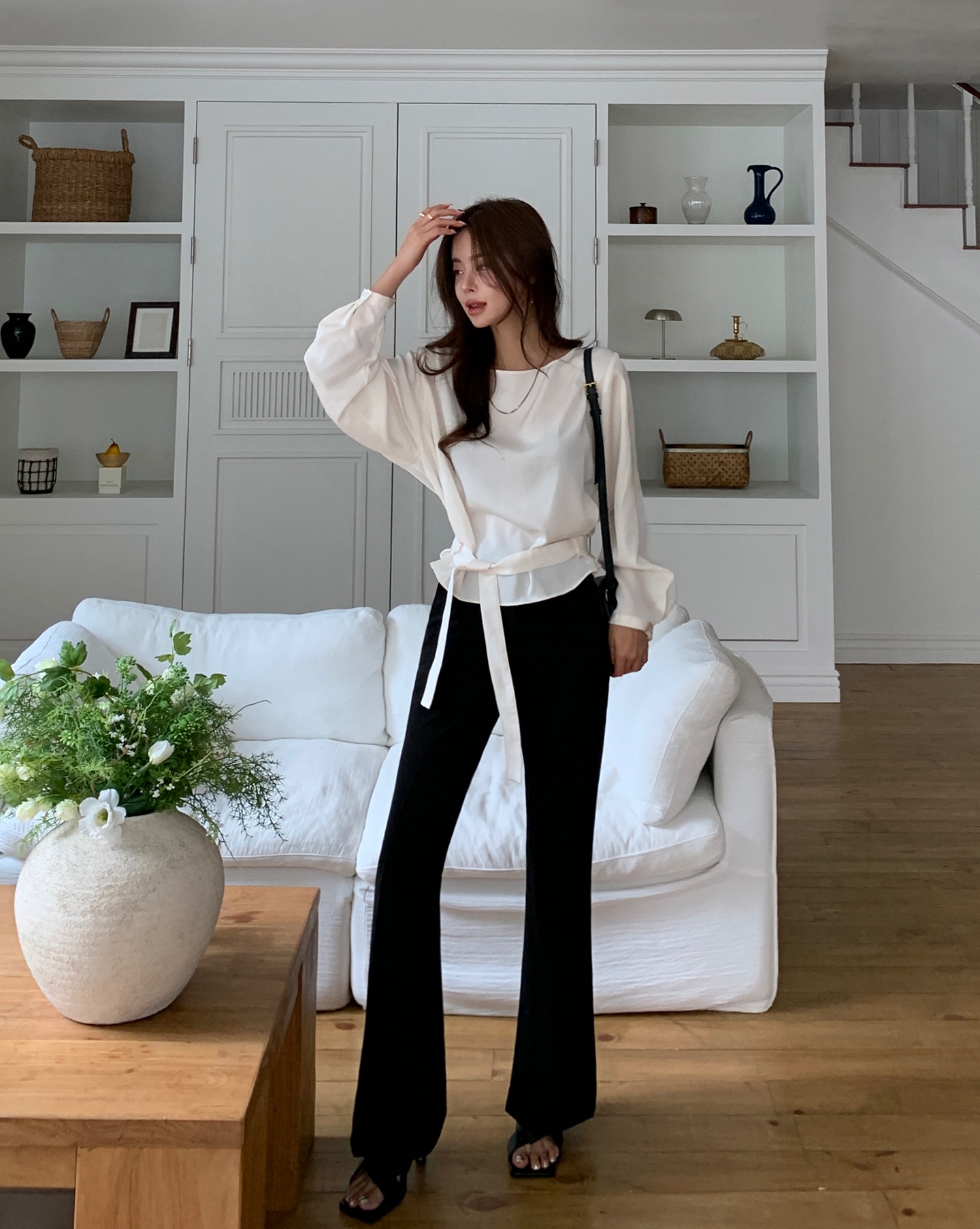 Một mẹo nhỏ là chọn quần có chất vải dày dặn và đứng form. Bạn có thể tạo điểm nhấn bằng phụ kiện như túi xách, giày hoặc thắt lưng màu đen, nâu hoặc pastel để outfit không bị quá đơn điệu. Đây là lựa chọn hoàn hảo cho những ai yêu thích phong cách tối giản nhưng vẫn muốn gây ấn tượng.