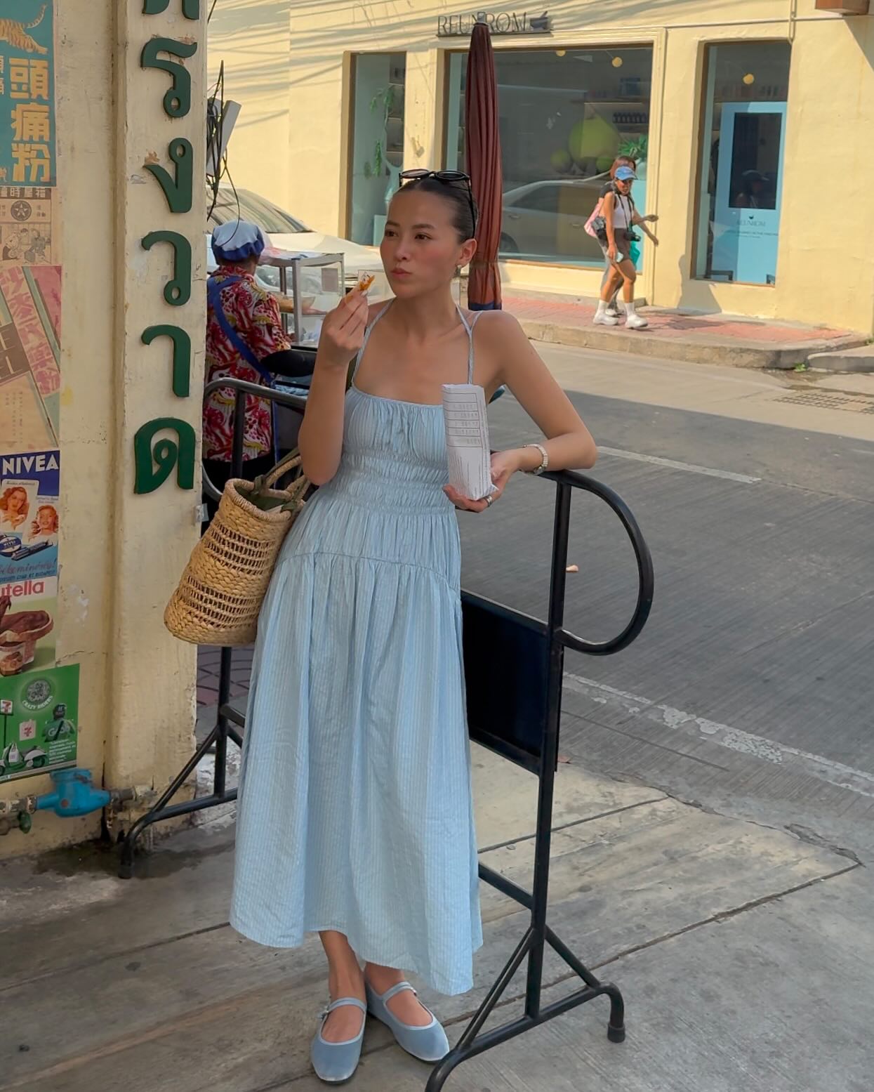 Váy maxi là "đặc sản" của các chuyến du lịch. Với độ dài đến mắt cá chân, váy maxi mang đến vẻ thướt tha, bay bổng cho người mặc. Váy maxi giúp vẻ ngoài trở nên nổi bật, ngay cả khi chị em chọn thiết kế đơn giản nhất.