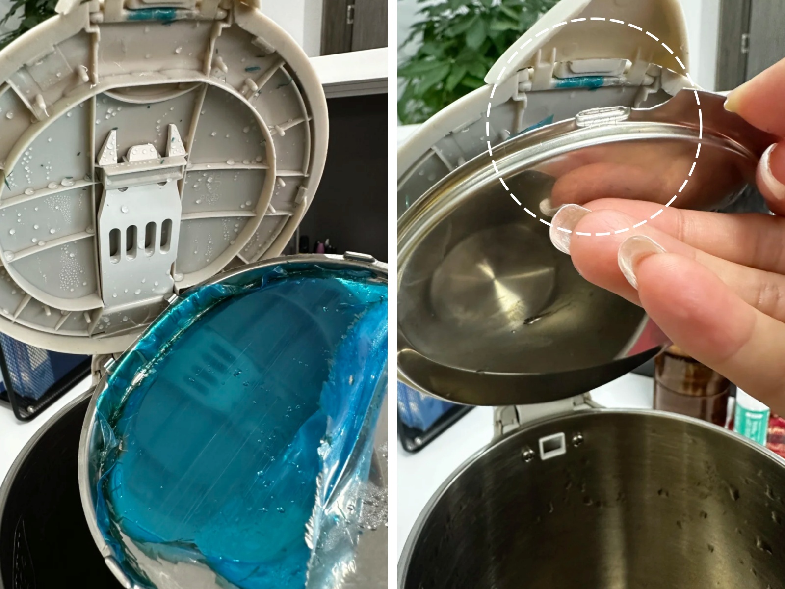 Ngoài ra, một số sản phẩm giá rẻ còn có cấu tạo nhiều lớp bên trong nắp. Trong quá trình sản xuất, lớp kim loại thường được dán kèm lớp bảo vệ hoặc màng mỏng. Nếu lắp ráp không kỹ, lớp này có thể bị giữ lại bên trong mà người dùng không nhận ra. Khi gặp hơi nước nóng lâu ngày, các lớp vật liệu này cũng có thể xuống cấp và rơi vào nước.