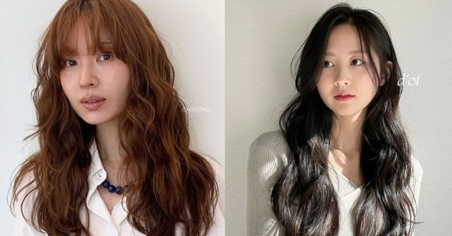 Một biến thể ngọt ngào của tóc xoăn chính là kiểu xoăn mái thưa, được yêu thích từ năm này qua năm khác. Mái thưa uốn nhẹ giúp khuôn mặt trông nhỏ gọn và thanh thoát hơn, trong khi phần tóc xoăn phía sau tạo cảm giác dịu dàng và nữ tính.