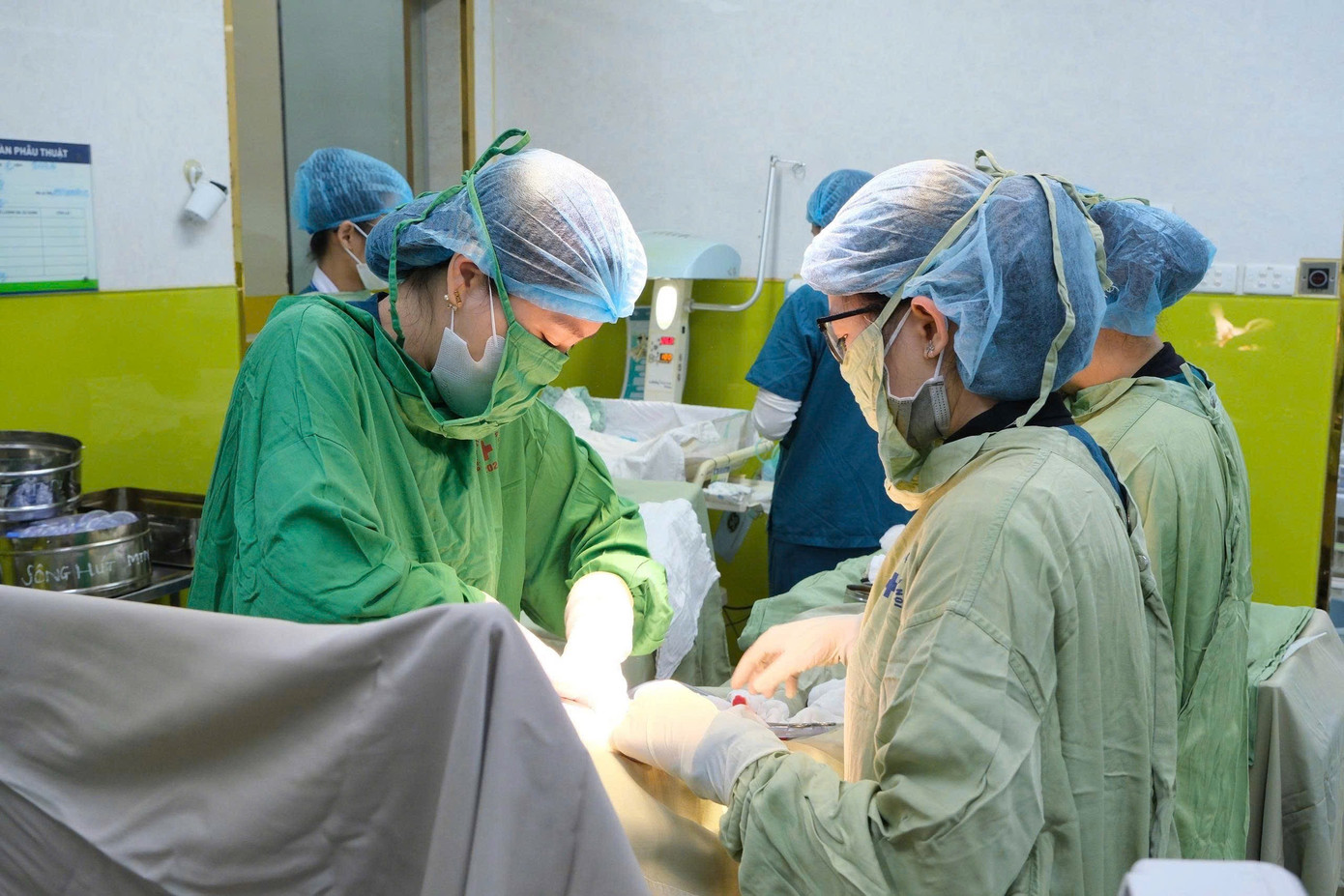 Sau khi hội chẩn kĩ lưỡng, các bác sĩ đã quyết định thực hiện can thiệp nội soi để ngắt nguồn nuôi dưỡng khối thai không tim – một thủ thuật đòi hỏi độ chính xác cao và kinh nghiệm chuyên sâu. Ca phẫu thuật diễn ra thành công, mạch nuôi của khối thai không tim bị cắt hoàn toàn, tạo điều kiện cho thai còn lại tiếp tục phát triển ổn định.