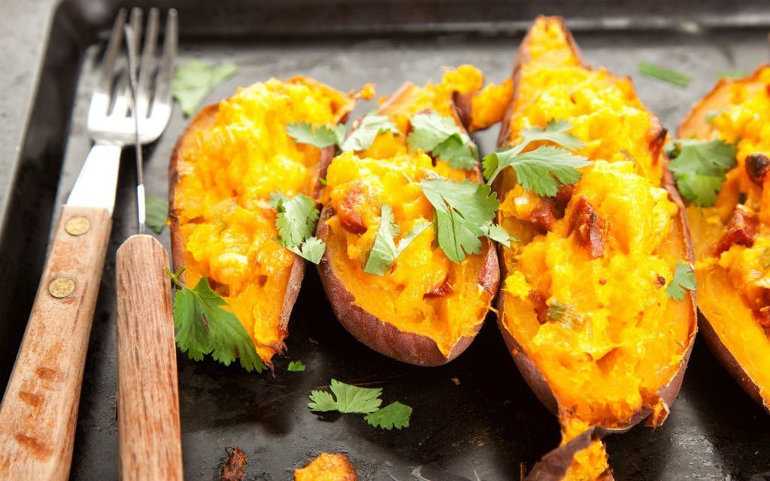 Khoai lang thuộc nhóm carb tiêu hóa chậm và tạo cảm giác no bụng lâu hơn. Trong khoai lang có chứa nhiều carotenoid, chất chống oxy hóa giúp ổn định lượng đường trong máu và giảm đề kháng insulin, giúp cơ thể bạn chuyển hóa calo thành năng lượng một cách hiệu quả chứ không được lưu trữ dưới dạng chất béo. Ngoài ra, thành phần vitamin cao (bao gồm A, C và B6) của khoai lang cũng cung cấp cho bạn nhiều năng lượng hơn để đốt cháy chất béo khi tập luyện thể dục.