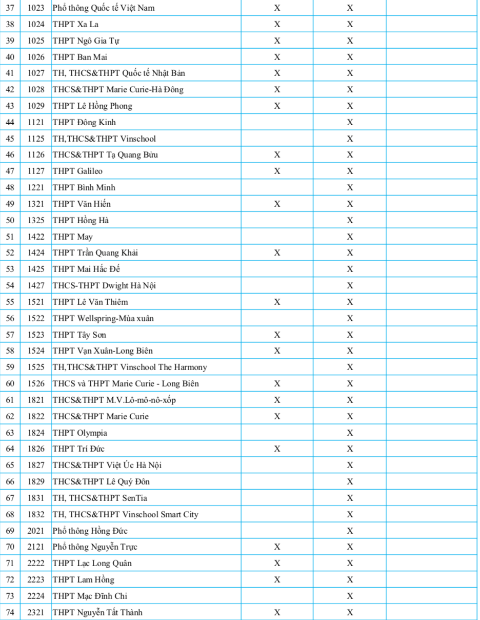 Danh sách các trường áp dụng phương thức xét học bạ khá đa dạng, gồm nhiều cơ sở giáo dục như: Nguyễn Siêu, Newton, Archimedes, Marie Curie, Lê Quý Đôn, Phan Huy Chú, Văn Lang hay Đinh Tiên Hoàng. Mỗi trường sẽ công bố chi tiết điều kiện xét tuyển, cách tính điểm và thời gian nhận hồ sơ trong kế hoạch tuyển sinh riêng.