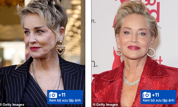 Ảnh trái là Sharon Osbourne với đường nét tạo khối rõ ràng hơn vào năm 2023 và hình ảnh phải là vẻ ngoài mềm mại hơn gần đây.