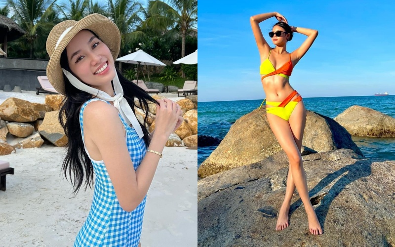 Á hậu Phương Anh, Đào Thị Hà đọ dáng nóng bỏng với áo tắm trên biển