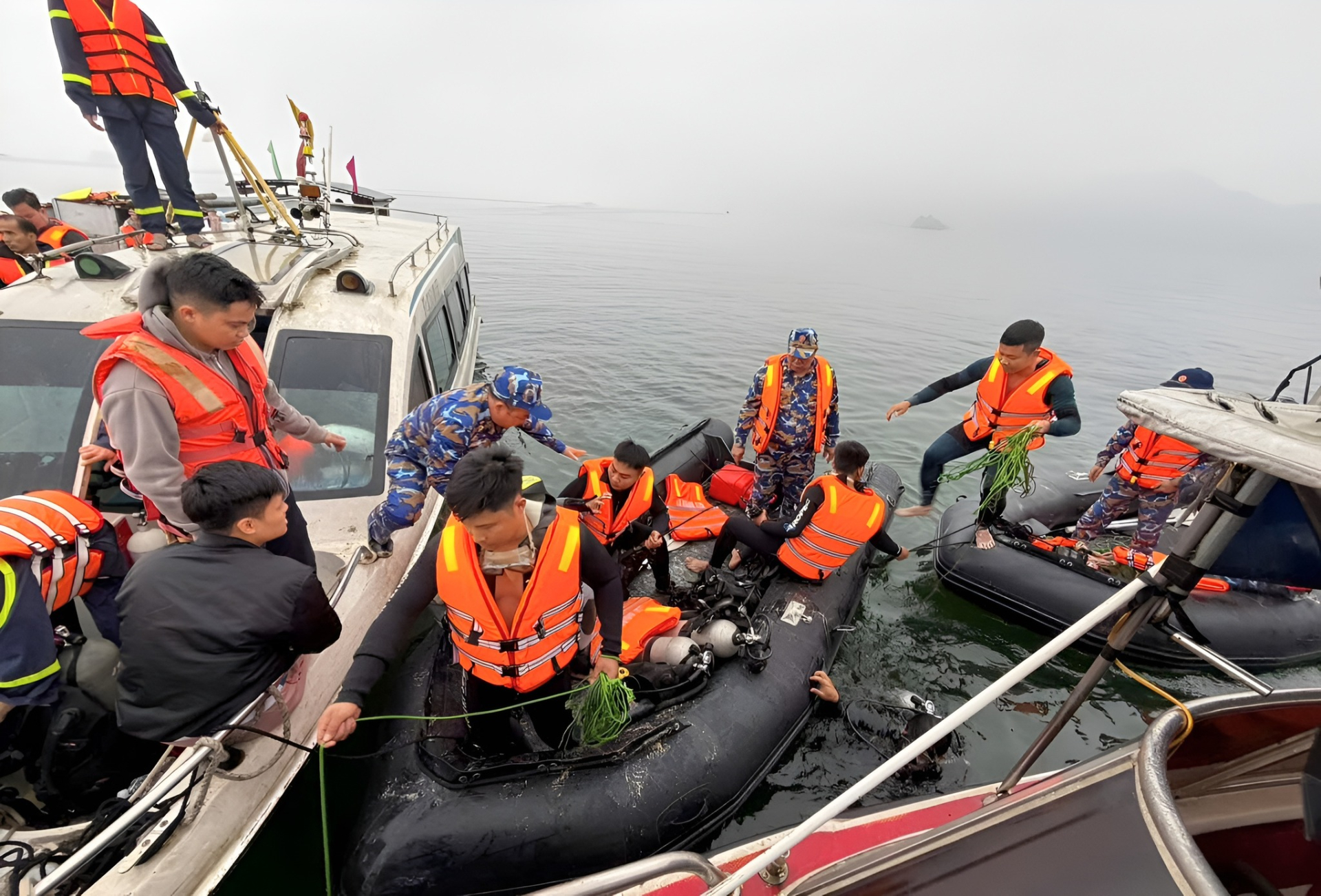 Lực lượng chức năng tiến hành tìm kiếm các nạn nhân