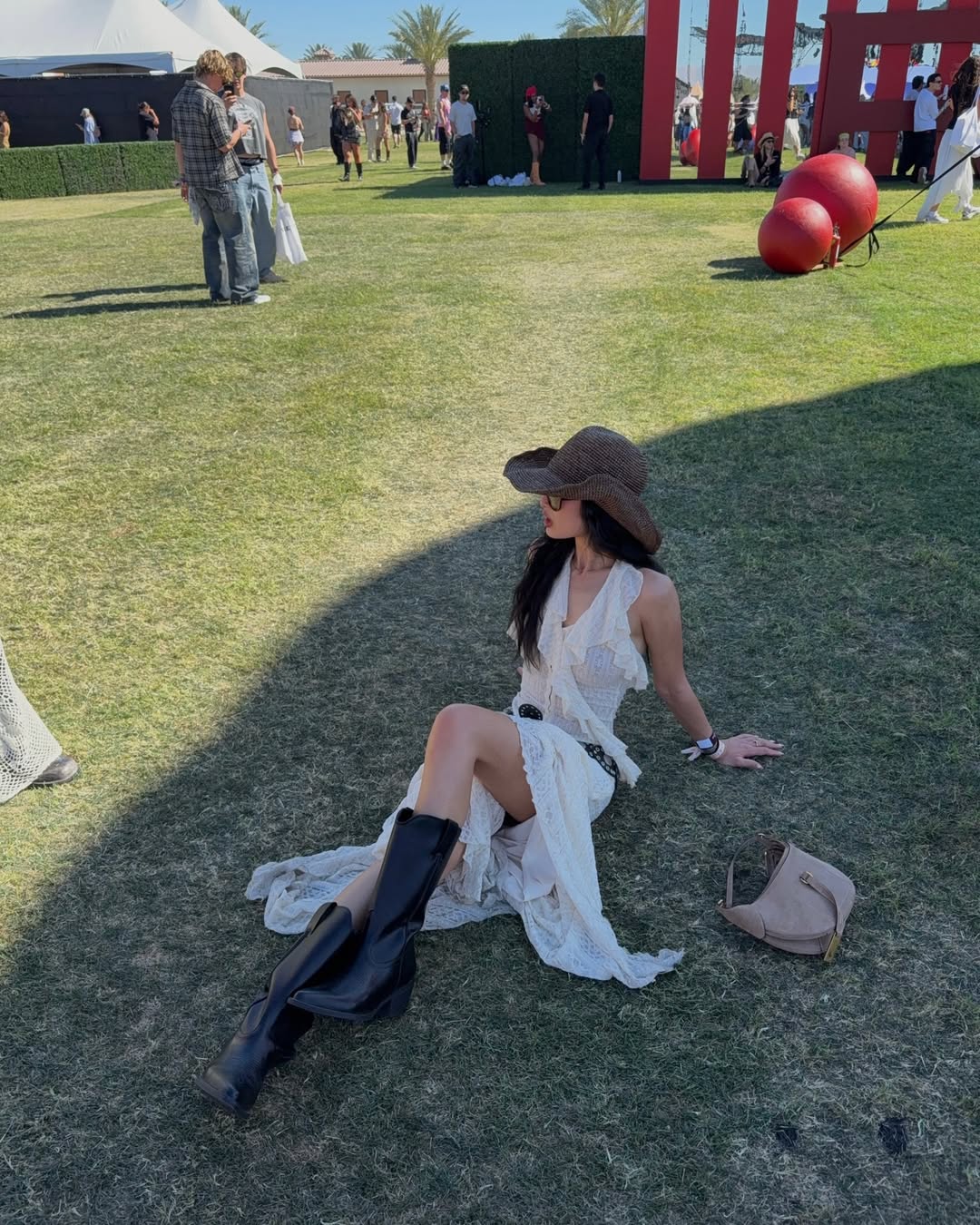 Cái tên được nhắc tới chính là Thanya Wong - nhà sáng tạo nội dung trong lĩnh vực thời trang và phong cách sống. Giữa một rừng những bộ cánh sexy hay hầm hố, Thanya chọn cho mình một hướng đi riêng với phong cách Bohemian kết hợp Cowgirl Core cực kỳ tinh tế. Chiếm trọn ánh nhìn là bộ trang phục tông màu trắng kem đồng nhất, cực kỳ nịnh mắt dưới ánh nắng.