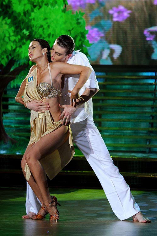 Ở đêm thi thứ 8, cô "đốt mắt" khán giả với trang phục hở đến 90% cơ thể.