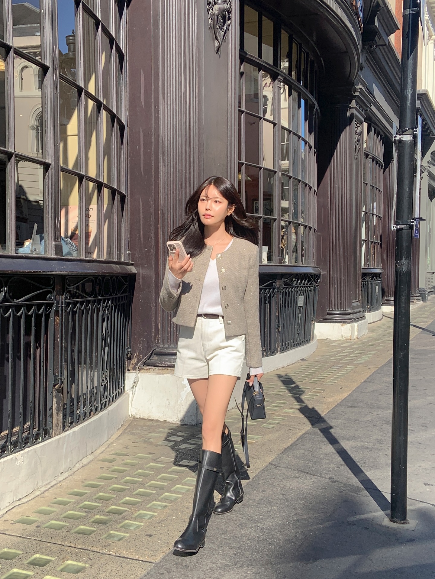 Một chiếc áo dạ ngắn màu trung tính như kem, be, xám nhạt hay pastel sẽ dễ dàng phối cùng váy liền, chân váy midi hoặc quần ống đứng. Nếu muốn nổi bật hơn, bạn có thể chọn áo dạ có chi tiết cổ vest, khuy to hoặc dáng croptop nhẹ để "hack dáng" hiệu quả. Khi kết hợp cùng boots cổ thấp hoặc giày mary jane, tổng thể trang phục sẽ vừa nữ tính, vừa thời thượng, đủ lịch sự để đi chúc Tết họ hàng mà vẫn rất ăn ảnh khi dạo phố.