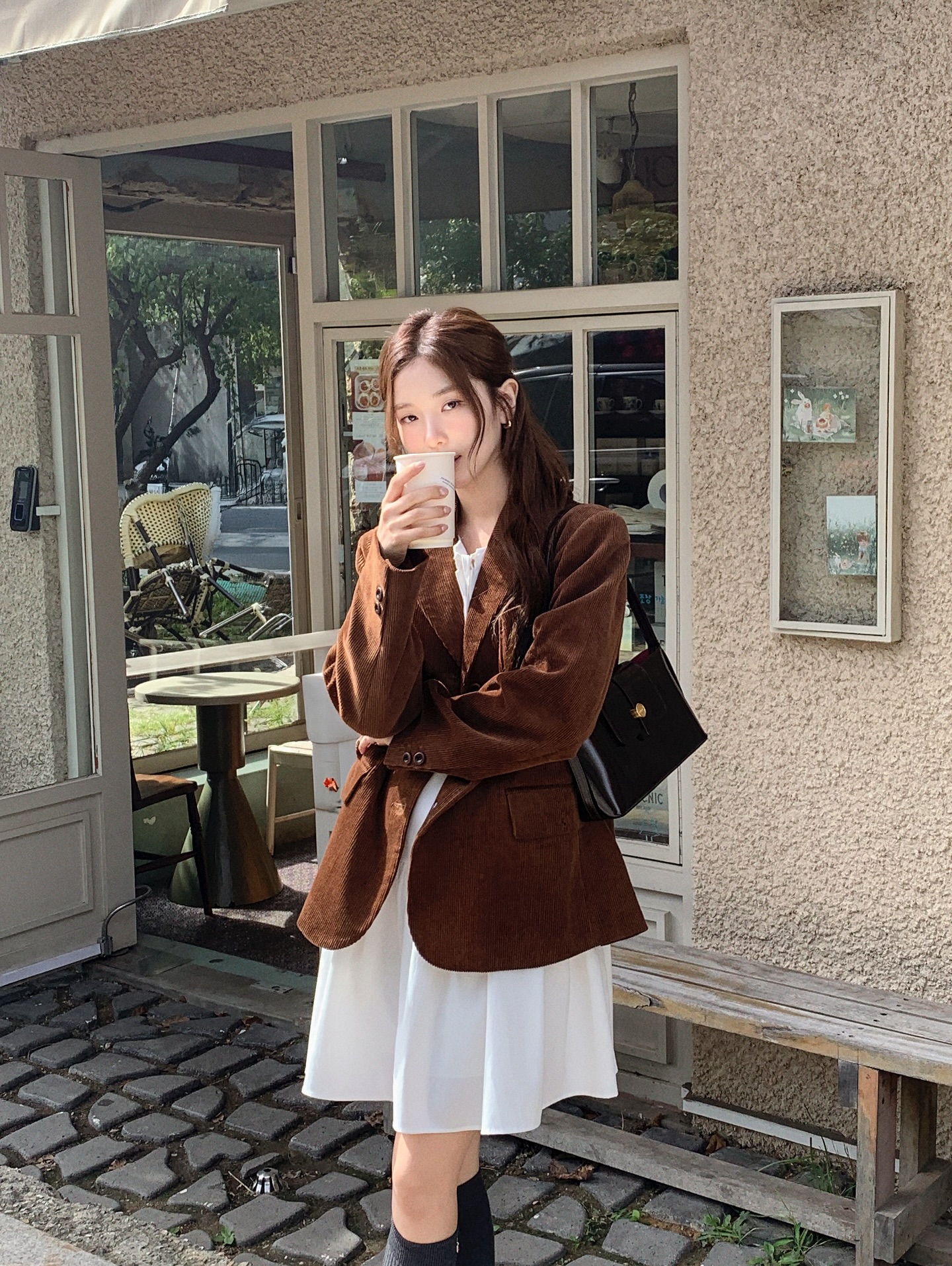 Bạn có thể chọn áo khoác nâu chất liệu dạ, tweed hoặc da lộn để tăng phần sang trọng. Gam nâu cũng cực kỳ "ăn ý" với các màu sắc Tết như đỏ rượu, cam đất, vàng nhạt hay trắng kem. Chỉ cần khoác một chiếc áo nâu ngắn bên ngoài váy sáng màu hoặc set đồ đơn giản, bạn đã có ngay vẻ ngoài nhã nhặn, thời trang mà không cần quá nhiều phụ kiện cầu kỳ. Đây là kiểu áo khoác phù hợp với cả những buổi gặp mặt gia đình lẫn những chuyến du xuân nhẹ nhàng.