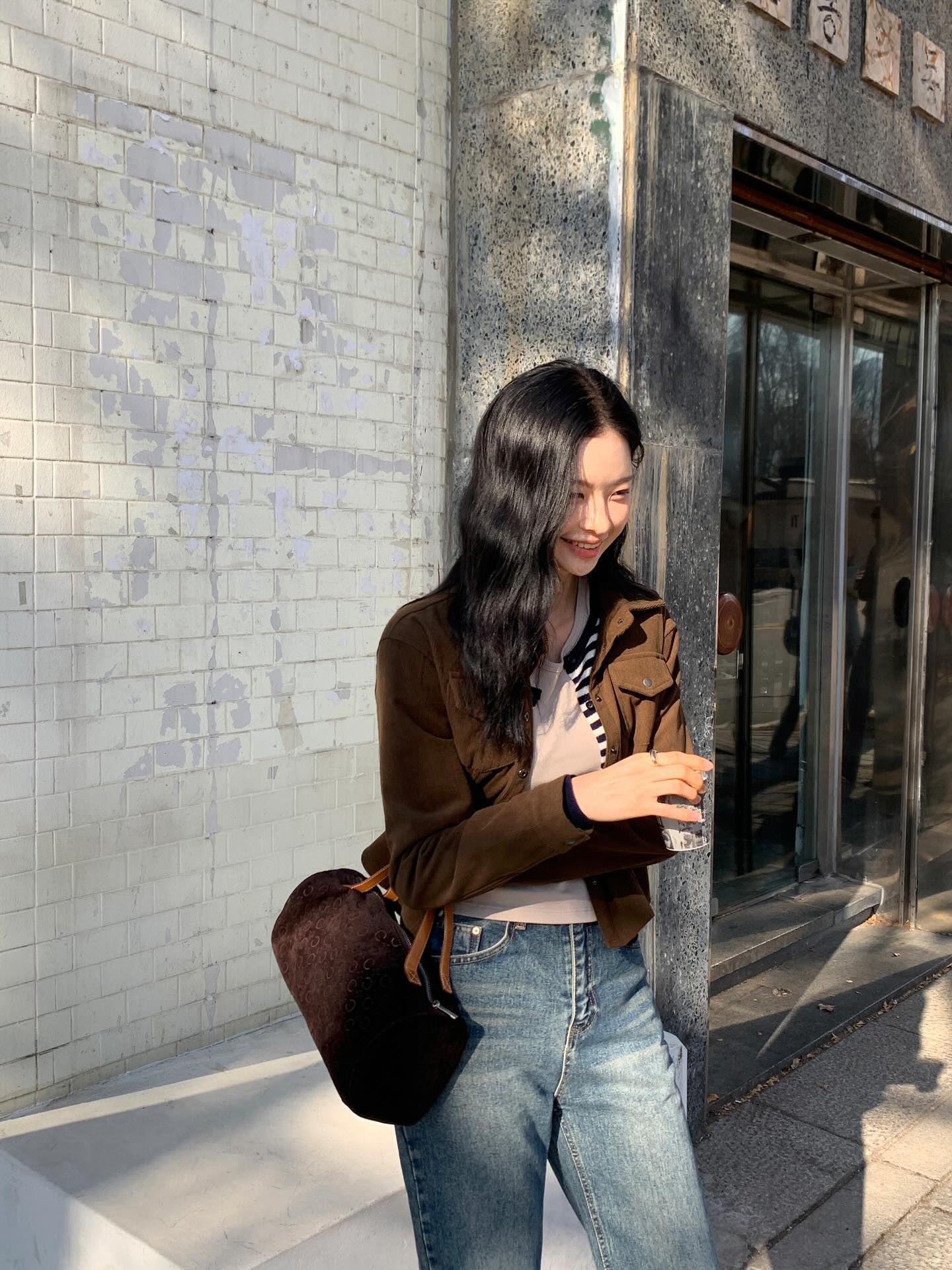 Màu nâu đang là gam màu "lên ngôi" mạnh mẽ trong vài mùa gần đây và tiếp tục được ưa chuộng dịp đầu năm. Áo khoác ngắn màu nâu mang đến cảm giác ấm áp, thanh lịch và có chút hoài cổ. So với màu đen quen thuộc, nâu tạo sự mới mẻ hơn nhưng vẫn dễ phối đồ và không kén da.