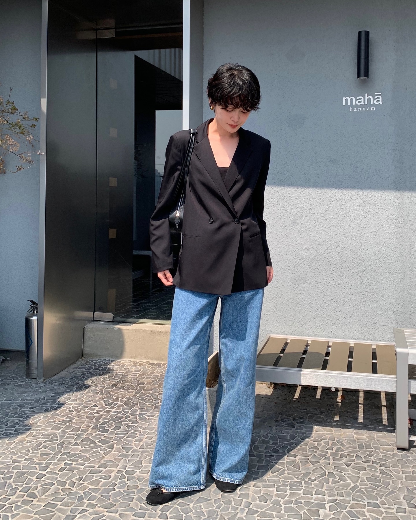 Áo blazer là lựa chọn kinh điển khi nhắc đến việc phối đồ cùng quần ống rộng. Sự chỉn chu, có cấu trúc của blazer giúp cân bằng độ mềm mại và rộng rãi của ống quần, tạo nên tổng thể hài hòa và hiện đại. Với môi trường công sở, một chiếc blazer dáng suông, màu trung tính như đen, xám, be hay nâu nhạt kết hợp cùng quần ống rộng cạp cao sẽ mang lại vẻ ngoài chuyên nghiệp nhưng không hề cứng nhắc.