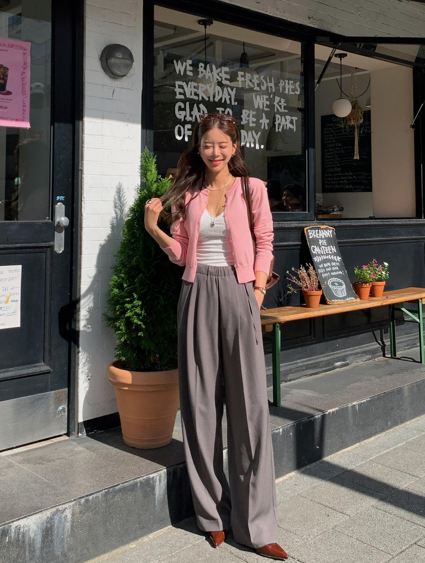 Áo cardigan và quần ống rộng