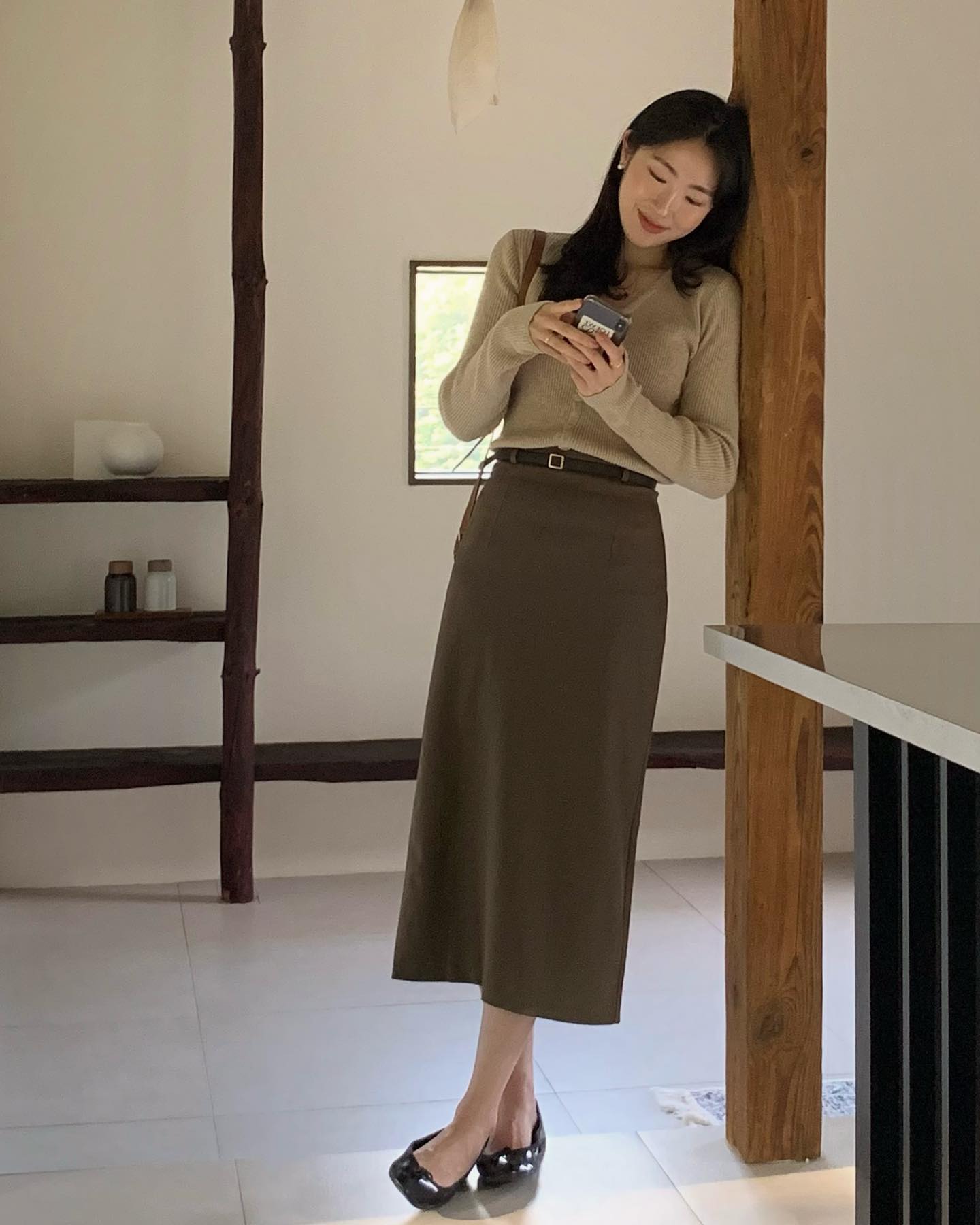 Áo len tăm và chân váy dài