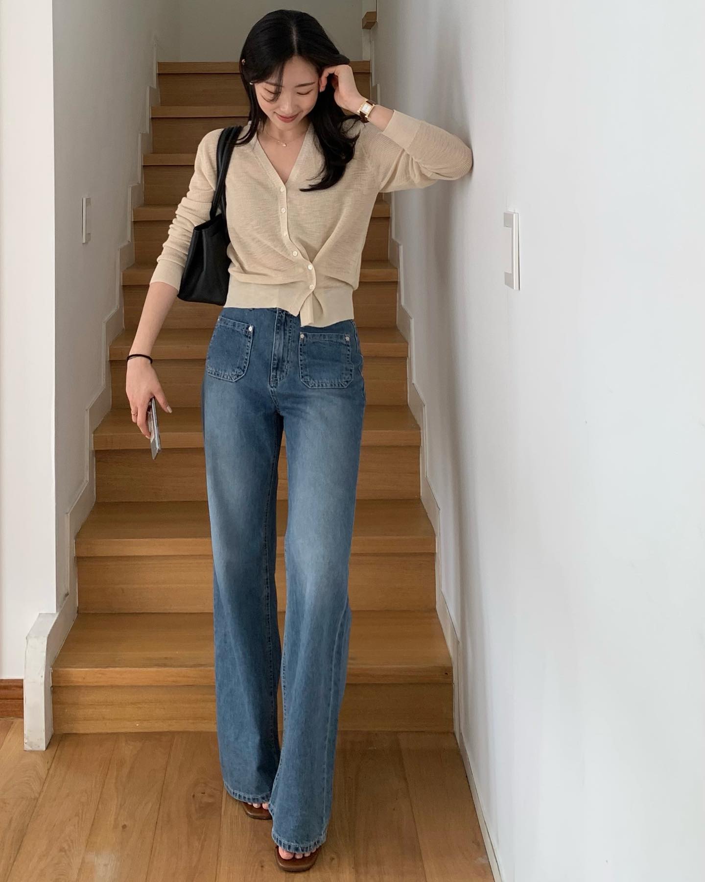 Để set đồ bớt phần đơn điệu, bạn có thể nhấn nhá bằng thắt lưng bản nhỏ, blazer khoác ngoài hoặc một đôi giày loafers da bóng. Sự kết hợp này không chỉ mang lại cảm giác thoải mái suốt ngày dài mà còn giúp bạn ghi điểm bởi phong cách thanh lịch, hiện đại.