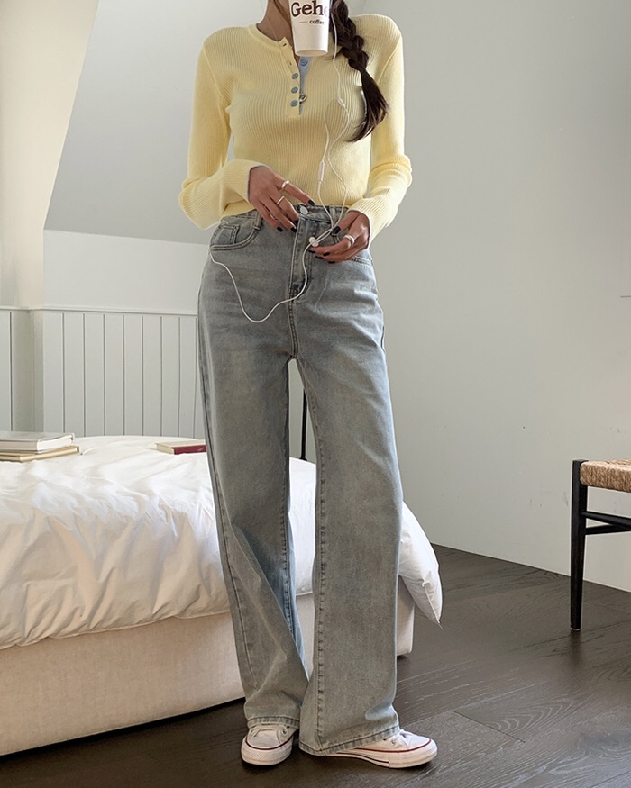 Đây là công thức phối đồ gần như "bất bại" dành cho mọi nàng. Quần jeans xanh mang lại cảm giác năng động, khỏe khoắn, khi kết hợp cùng áo pastel sẽ tạo nên tổng thể hài hòa, dễ nhìn. Áo pastel dáng ôm giúp tôn dáng khi đi cùng jeans cạp cao, trong khi áo form rộng pastel lại hợp với quần jeans ống đứng hoặc ống suông.