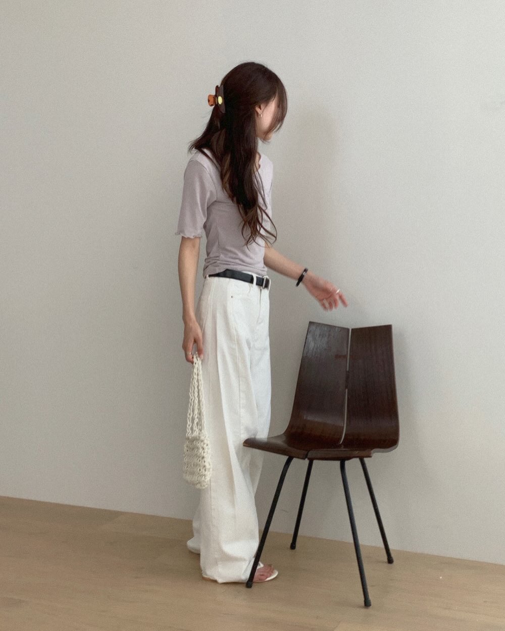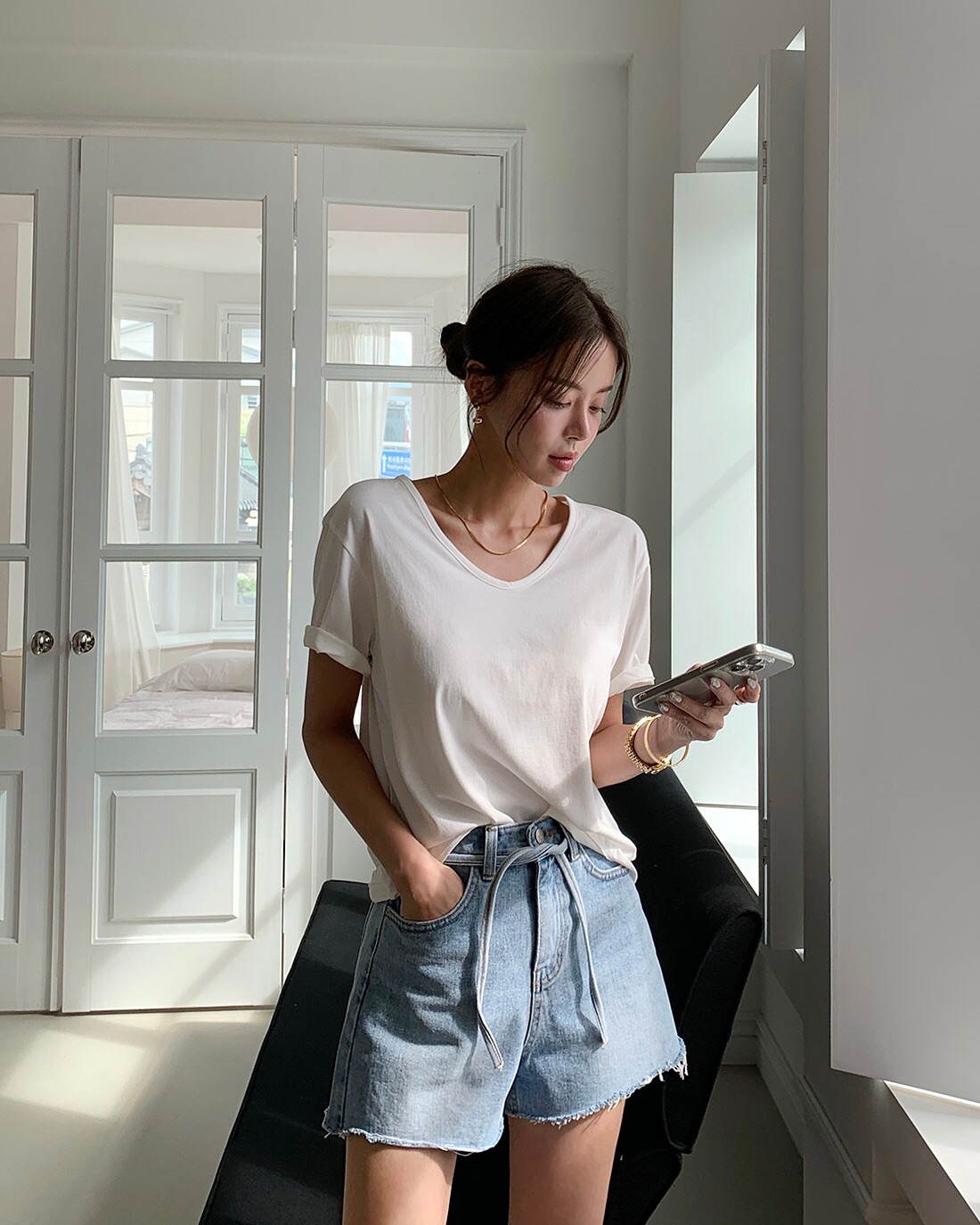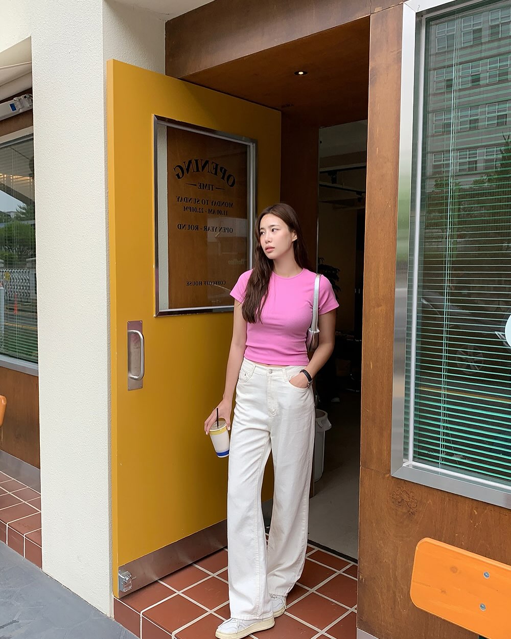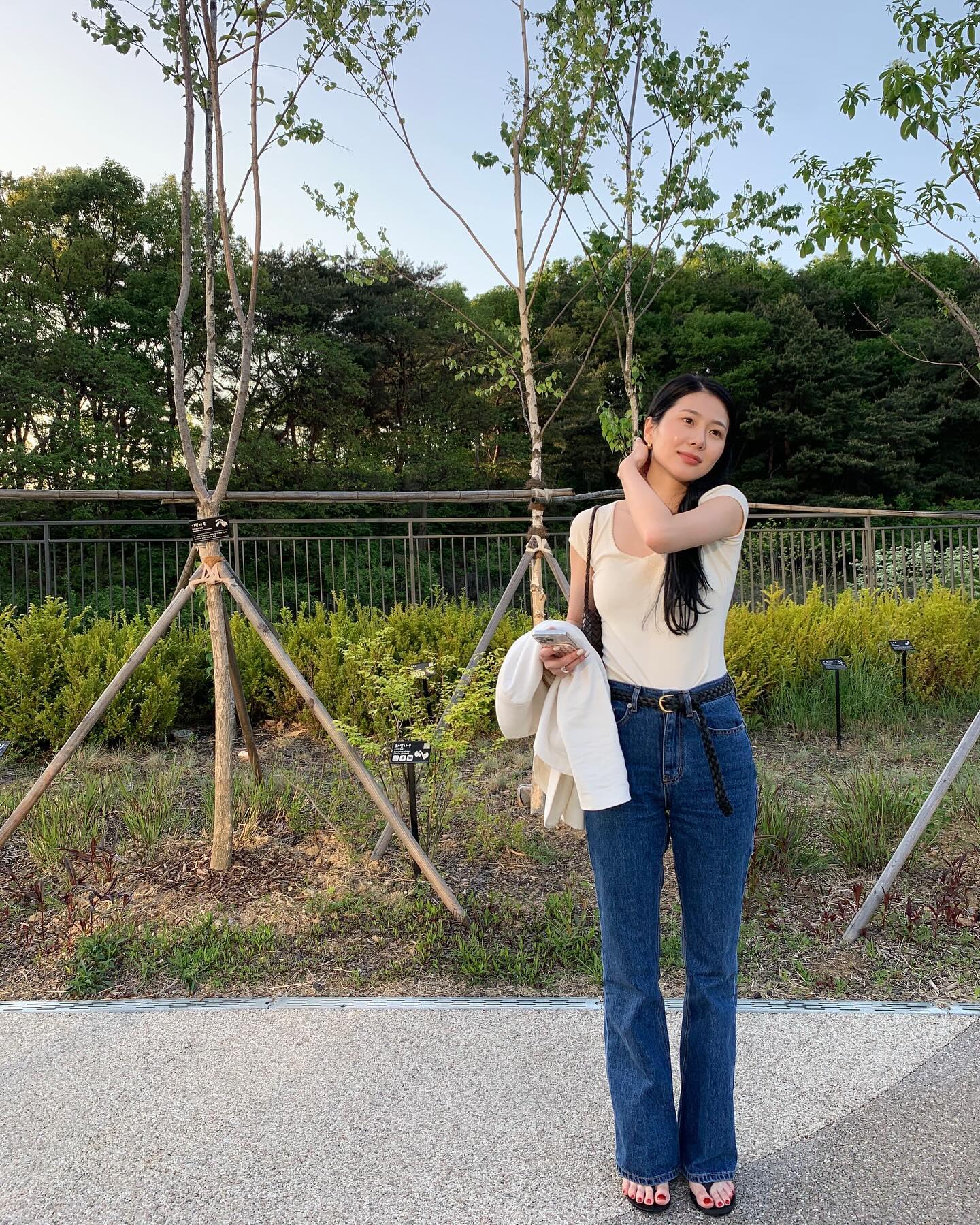 Quần denim trắng là món đồ giúp outfit mùa hè trở nên sáng sủa và nổi bật hơn. Khi phối cùng áo thun, sự tương phản màu sắc tạo nên cảm giác tươi mới và hiện đại.