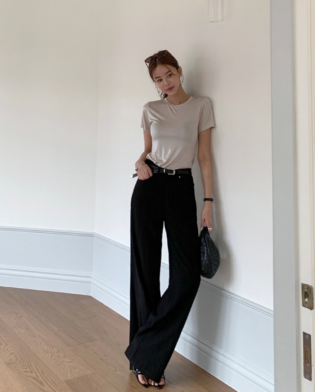 Áo thun và quần đen ống suông