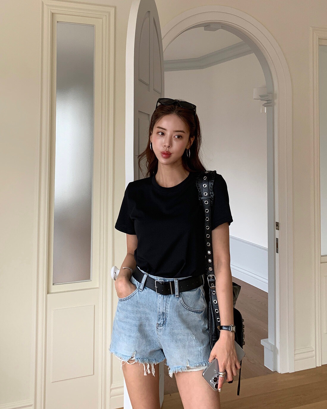 Quần short denim, short kaki hoặc short vải đều có thể phối tốt với áo thun. Với phong cách năng động, bạn có thể chọn áo thun oversized phối cùng short trên gối và sneaker. Trong khi đó, áo thun dáng vừa kết hợp short kaki sẽ mang lại vẻ ngoài gọn gàng và trưởng thành hơn.