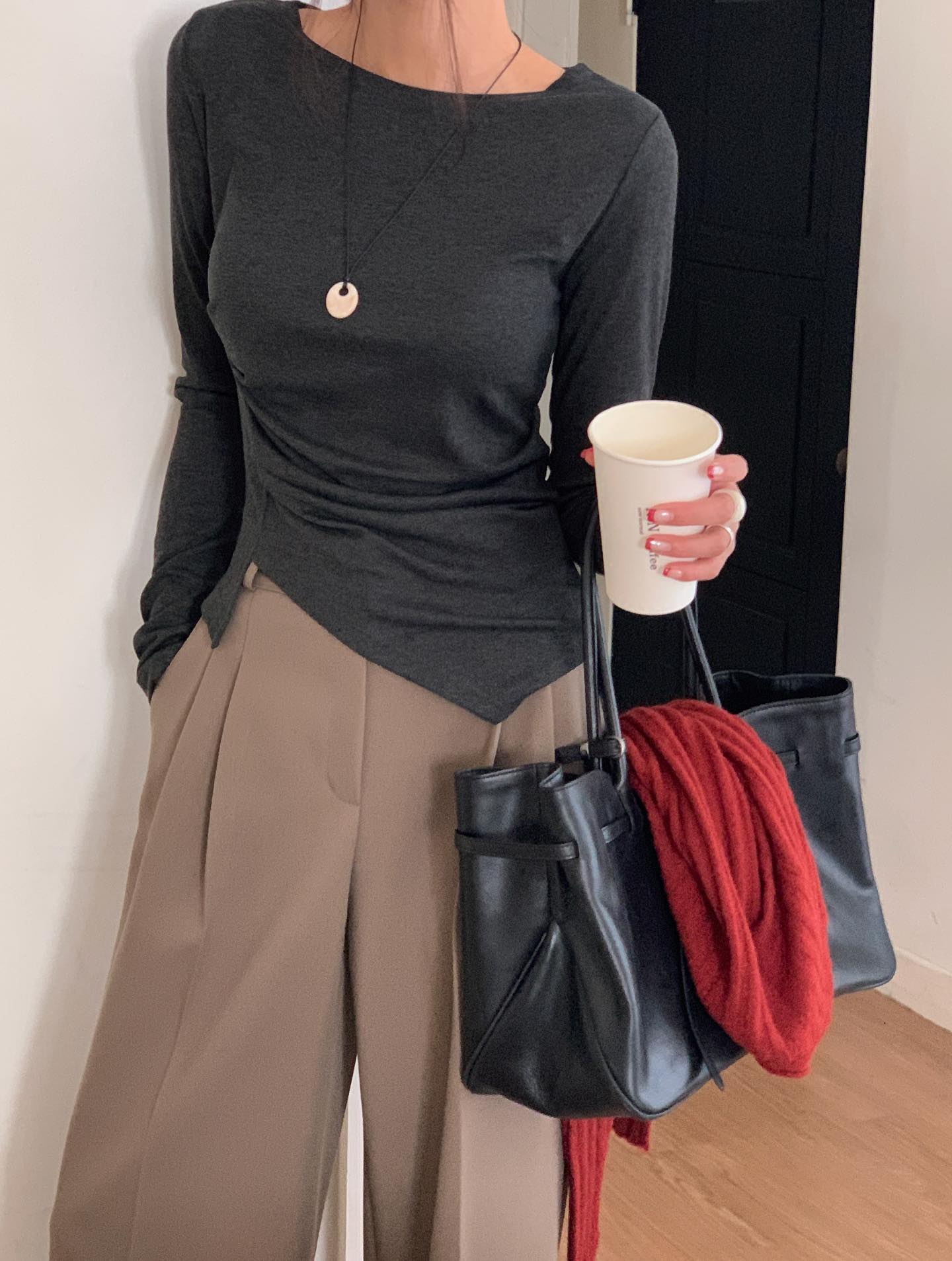 Khi kết hợp với áo thun dài tay, một chiếc quần dài ôm nhẹ hoặc quần ống rộng đều có thể tạo ra những bộ trang phục đầy ấn tượng. Nếu bạn yêu thích sự thoải mái, quần nhung gạch dáng suông sẽ là sự lựa chọn lý tưởng, vừa giúp bạn di chuyển dễ dàng, vừa giữ ấm cho đôi chân. Nếu bạn muốn sự thanh lịch hơn, một chiếc quần vải hoặc quần jeans tối giản sẽ giúp bạn có vẻ ngoài vừa trẻ trung, vừa phù hợp cho những buổi hẹn hay đi làm.
