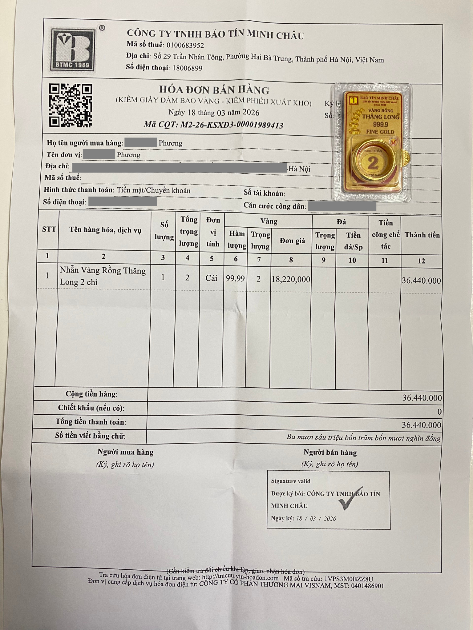Thứ ba: Không mua vàng trên mạng, kể cả là vàng thương hiệu lớn, có hóa đơn đi kèm. Dù giao dịch vàng theo cách này thường rẻ hơn, nhưng rủi ro đi kèm cũng cao. “Mình không đủ tinh ý để phát hiện đó là vàng giả hay vàng thật, hóa đơn giả hay hóa đơn thật, nên cứ giao dịch tại tiệm vàng lớn thôi mới yên tâm được” - Chị Phương nhấn mạnh.