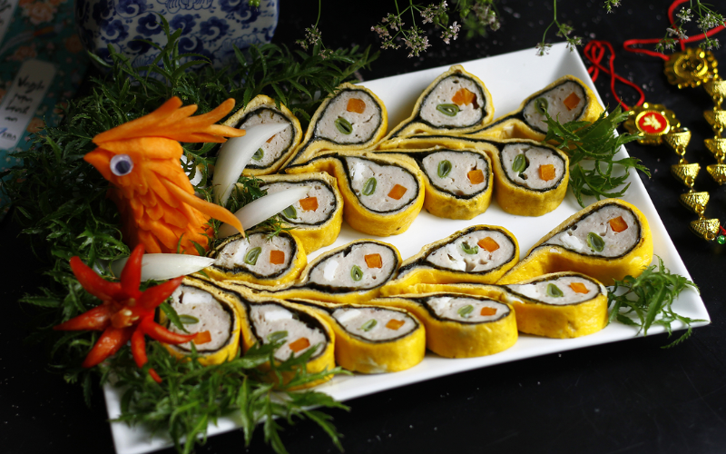 Trong các bữa tiệc cung đình xưa, "Trứng hấp vân" (hay còn gọi là trứng cuộn ngũ sắc) luôn chiếm vị trí trang trọng. Không chỉ bởi hương vị thanh tao, món ăn này còn là một "vật phẩm phong thủy" được thiết kế để cầu mong sự tích lũy tài sản. Người xưa tin rằng, cấu trúc tầng lớp của món ăn này chính là hình ảnh mô phỏng của "tiền đè lên tiền", giúp gia chủ giữ chặt lộc lá.