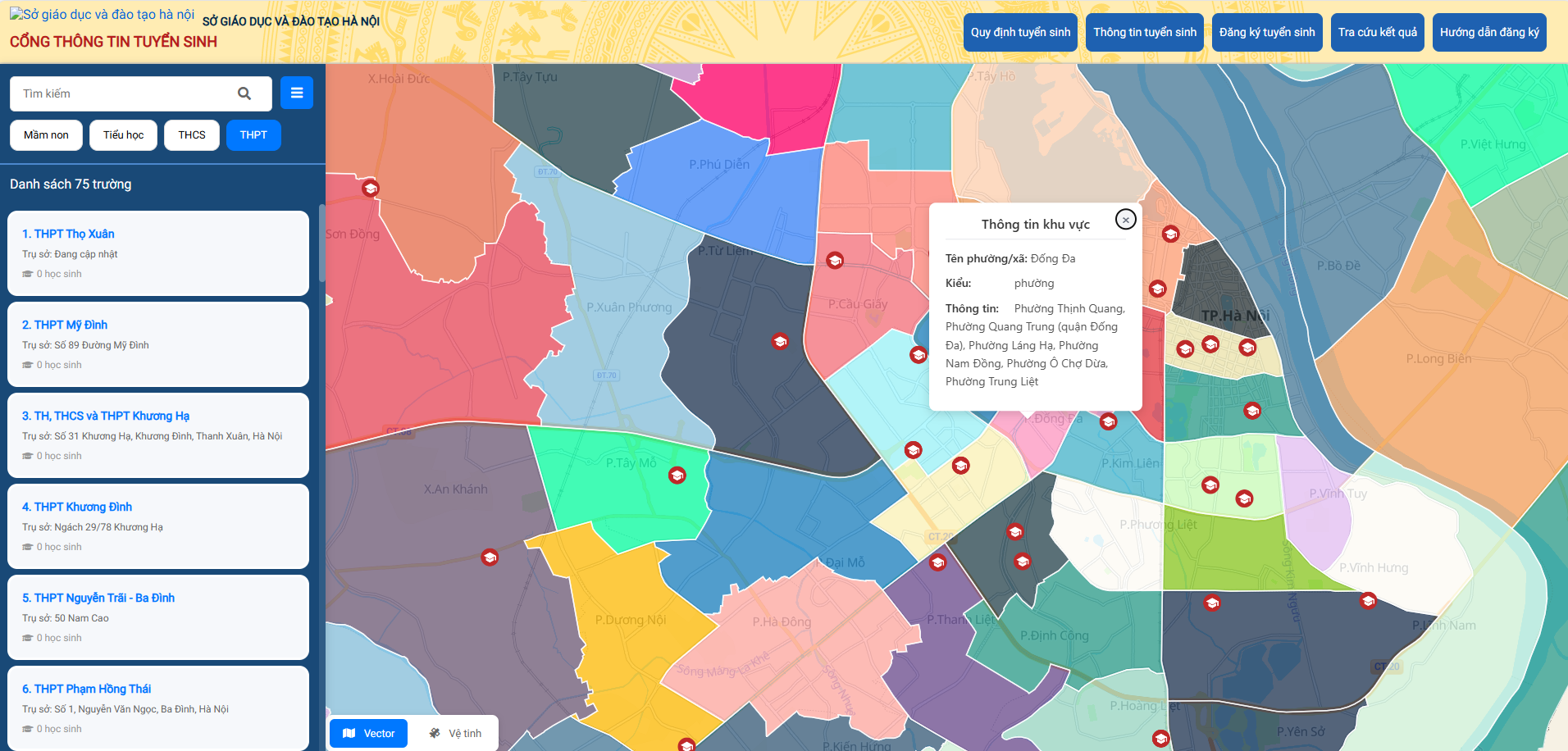 Bản đồ tuyển sinh toàn thành phố Hà Nội (Ảnh chụp màn hình)