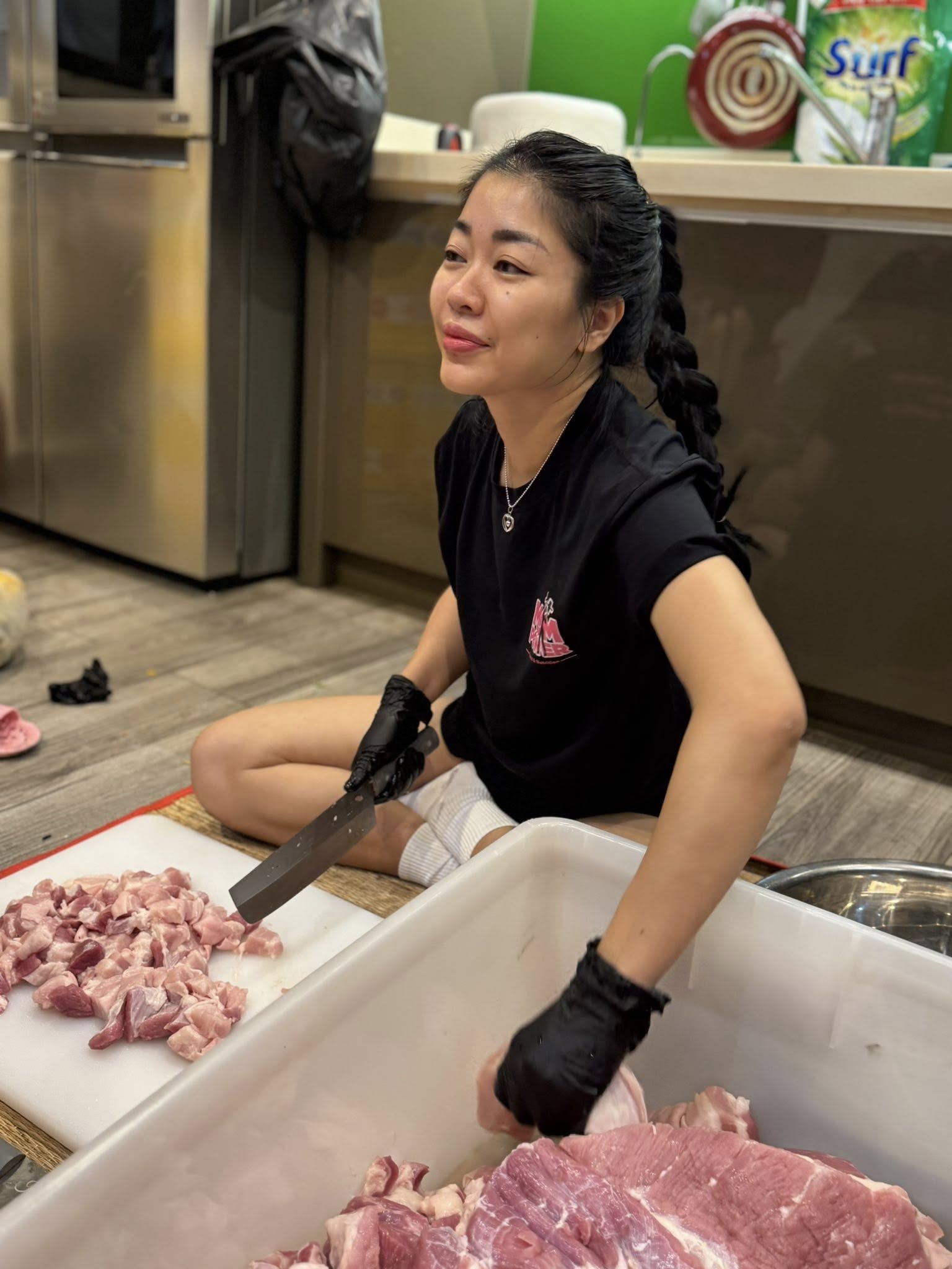 Công đoạn chuẩn bị nguyên liệu nấu 80 suất ăn 0 đồng được hotmom Helen Nguyễn chia sẻ trên trang cá nhân.