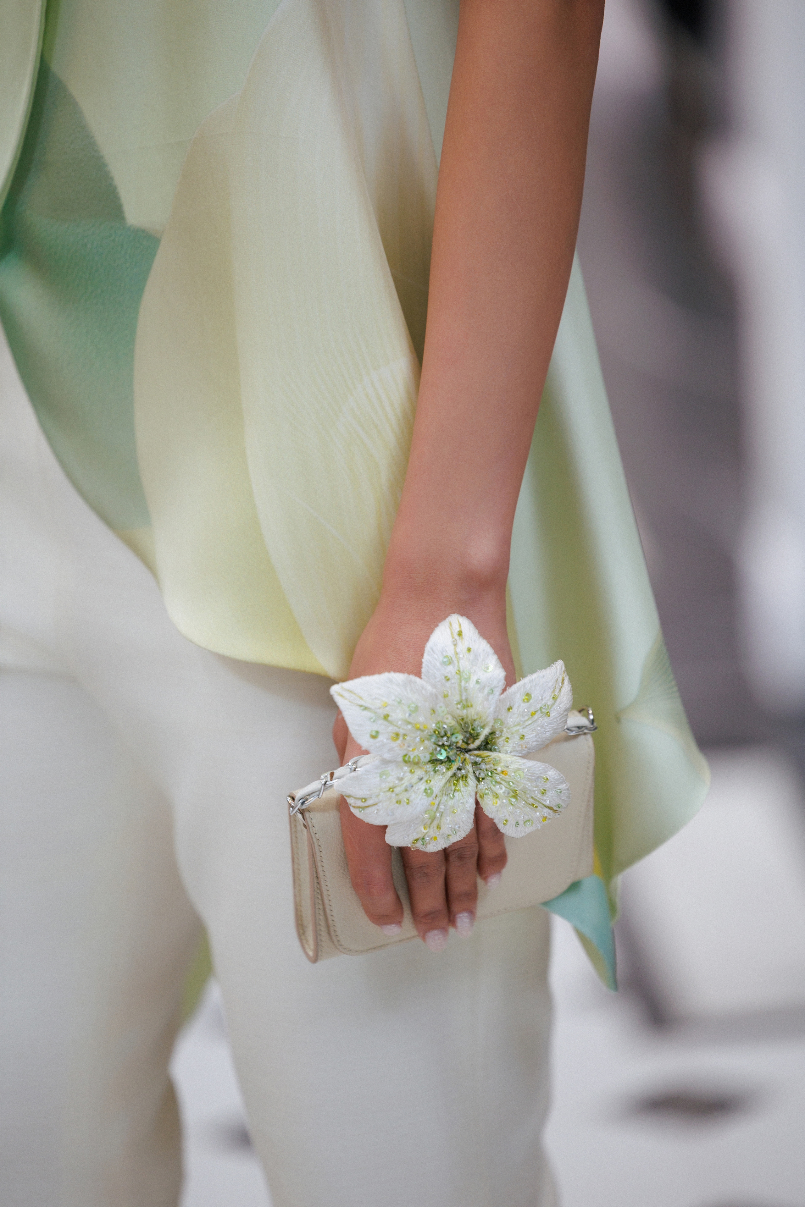 Cũng chính cảm hứng của bộ sưu tập đã định hình bảng màu xu hướng cho mùa Xuân/Hè 2026 với sự chuyển sắc dịu nhẹ từ trắng huệ tây, xanh lá non, xanh ngọc, vàng (nhụy hoa)… giữ lại cảm giác dịu mát, trong lành của một ngày hè tĩnh lặng.