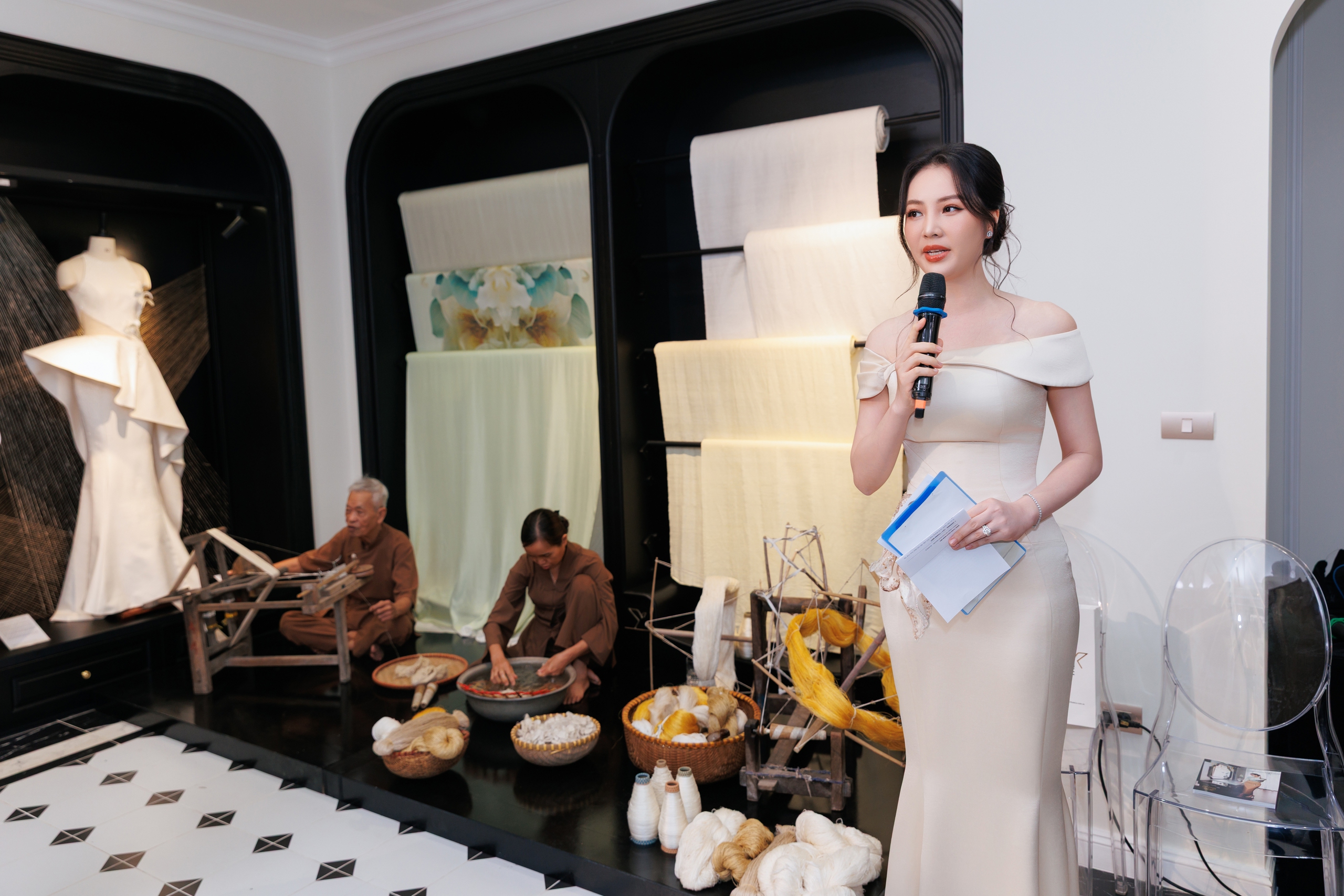Tại không gian triển lãm, XUANLE tôn vinh sự hiện diện của các nghệ nhân đến từ đũi Đại Hoà - gia đình nghệ nhân Nguyễn Đình Đại, làng nghề đũi tơ tằm Nam Cao với lịch sử hơn bốn trăm năm. Hai nghệ nhân đũi Đại Hoà thực hiện quá trình quay tơ, kéo sợi, mang đến trải nghiệm chân thực, giàu cảm xúc cho các khách mời tham dự chương trình.