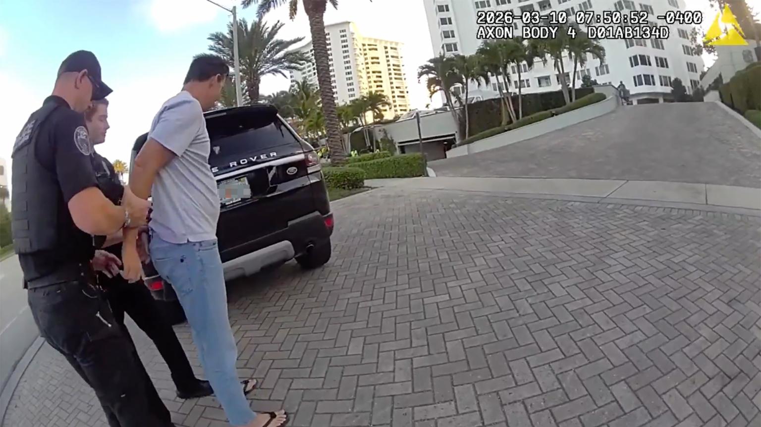 Trong khi đó, ông Petrus Viljoen (57 tuổi) đang lái một chiếc SUV màu đen thì bị cảnh sát chặn lại. Sau khi được yêu cầu bước ra khỏi xe, Petrus Viljoen mặc áo phông xám và quần jeans, trông có vẻ bối rối và hỏi: "Các anh đang bắt giữ tôi à?". Viên cảnh sát giải thích rằng Petrus Viljoen đang bị điều tra về tội trộm cắp, đã bị bắt giữ và sẽ được đưa đến nhà tù hạt Palm Beach.