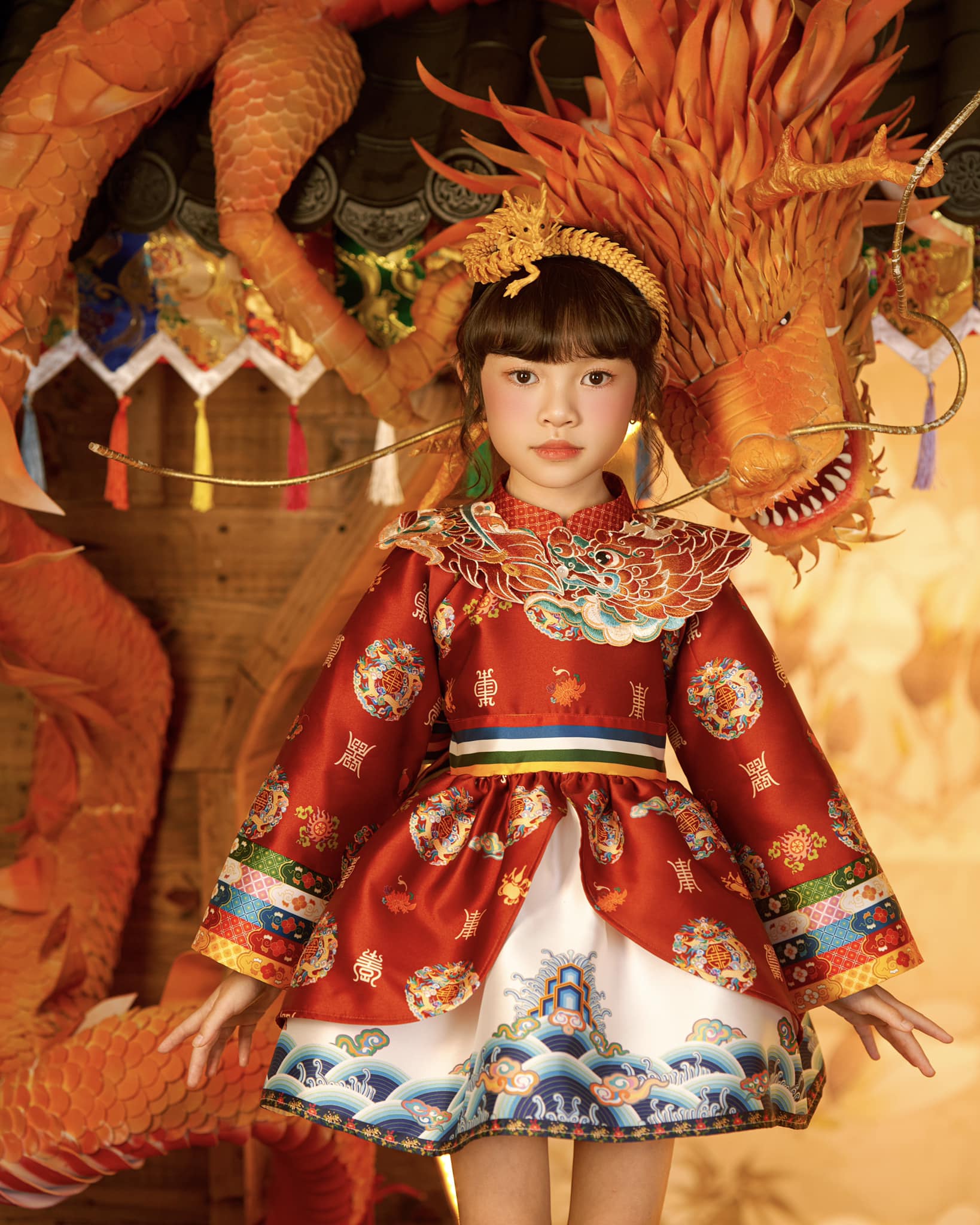 Ái nữ của HH Đỗ Mỹ Linh diện váy Y Long trong Tết 2024 tạo nên cơn sốt "chưa từng có" cho trend váy áo mặc Tết của các bé suốt 2 năm qua.