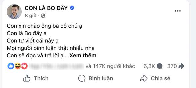 Chỉ với những câu chữ ngây thơ, lễ phép nhưng vô cùng rõ ràng, bài đăng của bé nhanh chóng lan truyền với tốc độ chóng mặt. Điều đặc biệt là bé Bo thực sự có ý định đọc và trả lời bình luận của mọi người: "Con sẽ đọc và trả lời hết ạ".