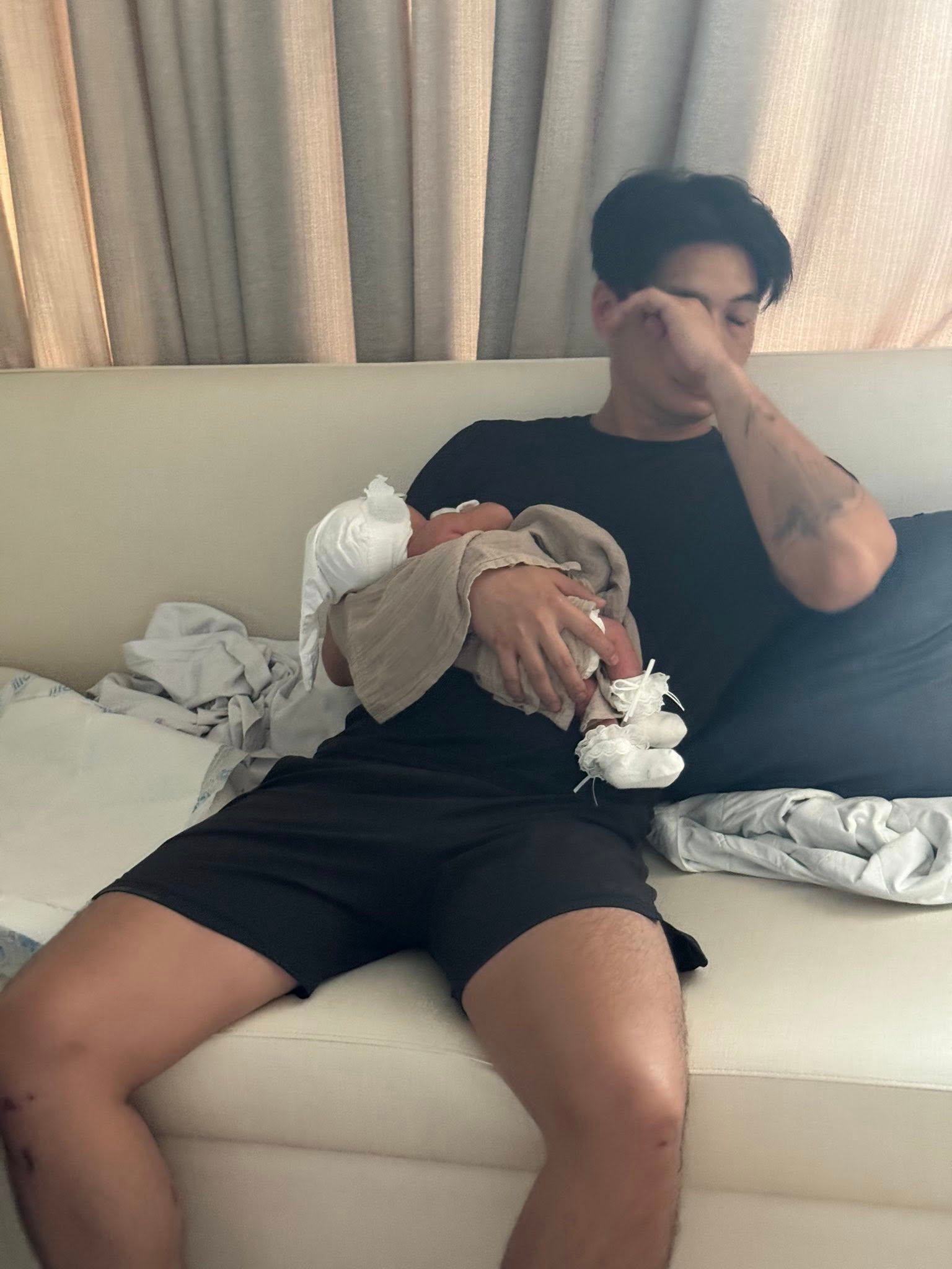 Một điểm đặc biệt trong hành trình này là sự đồng hành của ông xã Huy Trần. Anh được chính vợ gọi là "ông bố của năm" khi luôn sát cánh từ việc thay tã, tắm cho con đến ru bé ngủ, giúp cô có thời gian hồi phục sau sinh.
