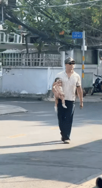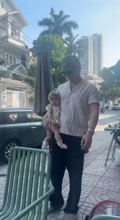 Trong clip, hình ảnh gây chú ý nhất chính là cách ba Huy bế bé Gạo "nhẹ tênh" chỉ bằng một tay. Động tác dứt khoát nhưng vẫn đầy sự dịu dàng khiến ai xem cũng phải bật cười thích thú. Điều đặc biệt là bé Gạo hoàn toàn hợp tác, ngoan ngoãn nằm gọn trong vòng tay ba, như đã quá quen với "kỹ năng" này.