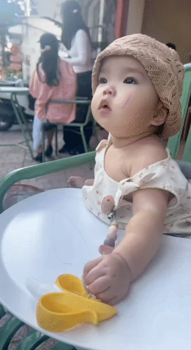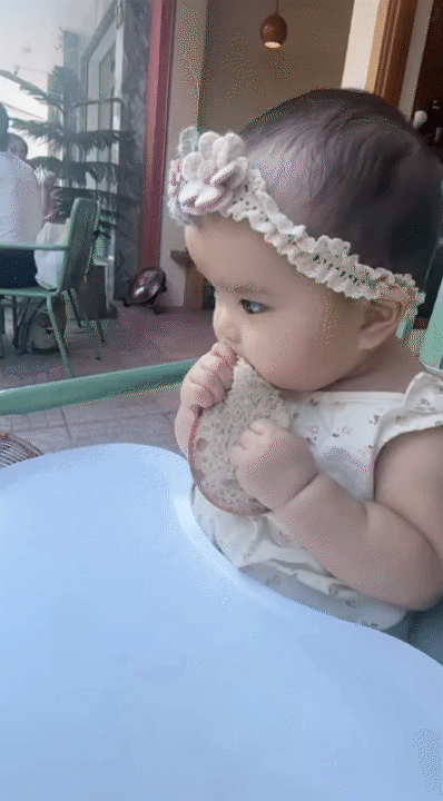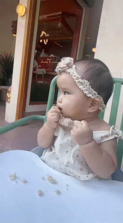 Tuy nhiên, "điểm sáng" khiến cộng đồng mạng phát sốt vẫn là độ háu ăn trứ danh của bé. Dù ở nhà hay ra ngoài, bé Gạo luôn thể hiện niềm đam mê bất tận với đồ ăn. Trong clip, chỉ một miếng bánh mì nhỏ cũng đủ khiến cô bé chăm chú nhấm nháp đầy hào hứng. Sự thích thú rất tự nhiên ấy khiến ai nhìn cũng phải bật cười vì quá đáng yêu.