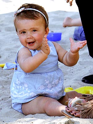 Thật là một em bé hạnh phúc, sau khi được chơi đu vô cùng vui thích dưới ánh nắng ấm áp, Honor Marie (10 tháng tuổi) được cho ngồi chơi trên bãi cát. Và cô bé con đáng yêu thích thú đến nỗi vừa vỗ tay vừa cười, thậm chí còn có lúc mẹ Jess lơ đãng bé còn cho cả cát vào mồm (6/4) |