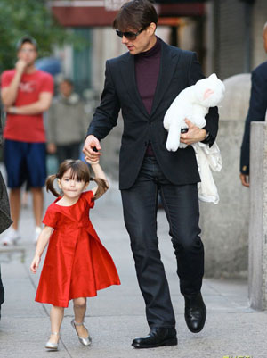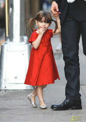 Tuần vừa quan, trong khi mẹ Katie Holmes còn bận rộn với bộ phim All my sons, thì Suri đã và bố bay đến New York cùng hai anh chị - Connor Antony, 13 tuổi và Isabella Jane, 15 tuổi, con nuôi của Tom và Nicole Kidman trong cuộc hôn nhân trước đây. Vốn đã quen nhìn thấy Suri trên báo, nhưng chắc chắn khán giả không thể không tiếp tục ngắm cô bé xinh đẹp này. Với chiếc váy đỏ dễ thương, mái tóc đã dài đủ để buộc thành hai bím nhỏ, Suri tung tăng trên phố như một thiên thần. Nếu như Tom và Katie đều là những biểu tượng thời trang nổi tiếng thì con gái cưng của hai người cũng là biểu tượng thời trang cho những cô bé ở độ tuổi của mình.