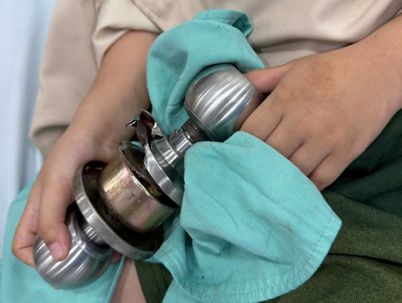 Tại khoa Chỉnh hình Nhi, các bác sĩ xác định đây là ca tai nạn sinh hoạt hiếm gặp nhưng tiềm ẩn nguy cơ tổn thương nặng nếu xử trí chậm hoặc sai cách. Ê kíp các bác sĩ chỉnh hình nhi, bác sĩ gây mê đã nhanh chóng phối hợp xử trí.