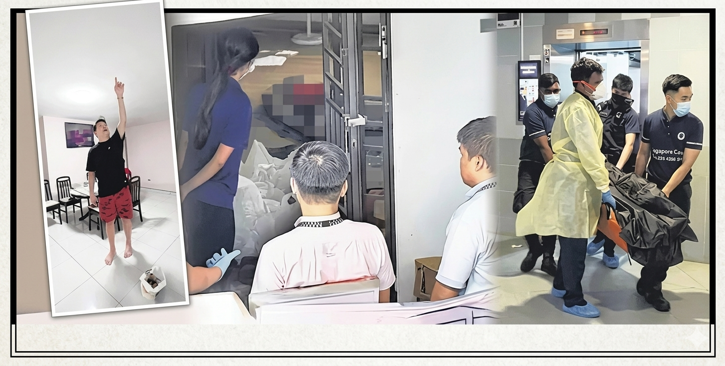 Ngày 6/10/2025, sự yên tĩnh tại một khu chung cư ở Sengkang (Singapore) bị phá vỡ khi cư dân tầng dưới phát hiện nước màu đỏ sẫm rò rỉ từ trần nhà, kèm theo mùi hôi thối nồng nặc kéo dài nhiều ngày. Cảnh sát buộc phải phá cửa căn hộ tầng trên. Bên trong, họ phát hiện thi thể một phụ nữ 48 tuổi trong tình trạng phân hủy nặng, cơ thể chỉ còn khoảng 24kg. Trong phòng ngủ, cha cô, 74 tuổi đã tử vong từ trước đó khá lâu, thi thể chỉ còn lại bộ xương.