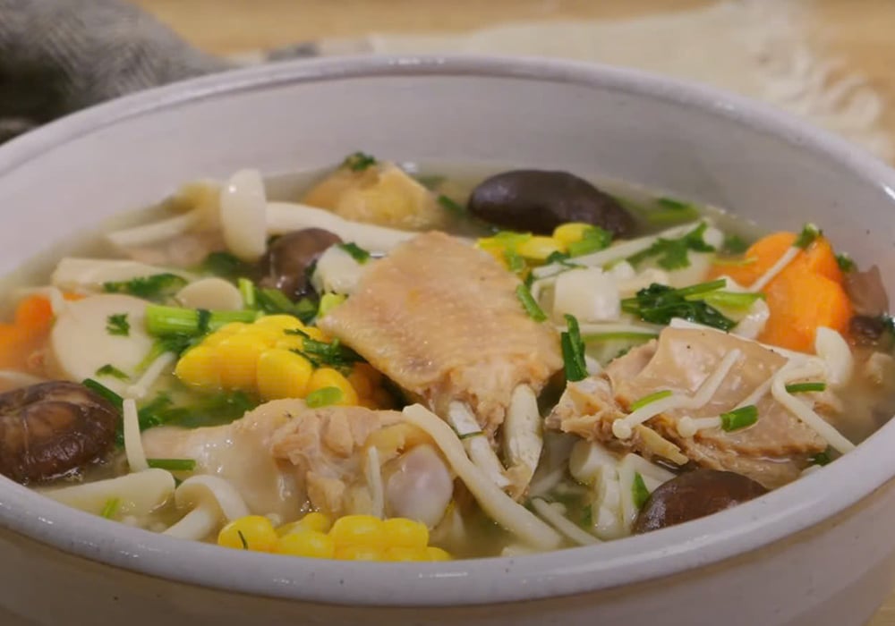 Thứ tự cho nguyên liệu: Cho các loại củ cứng (cà rốt, ngô) vào trước, nấm vào sau cùng để giữ độ giòn và hương vị tinh khôi. Khi nấu, đừng để lửa quá to, hãy giữ ngọn lửa vừa phải để năng lượng được thẩm thấu từ từ.
