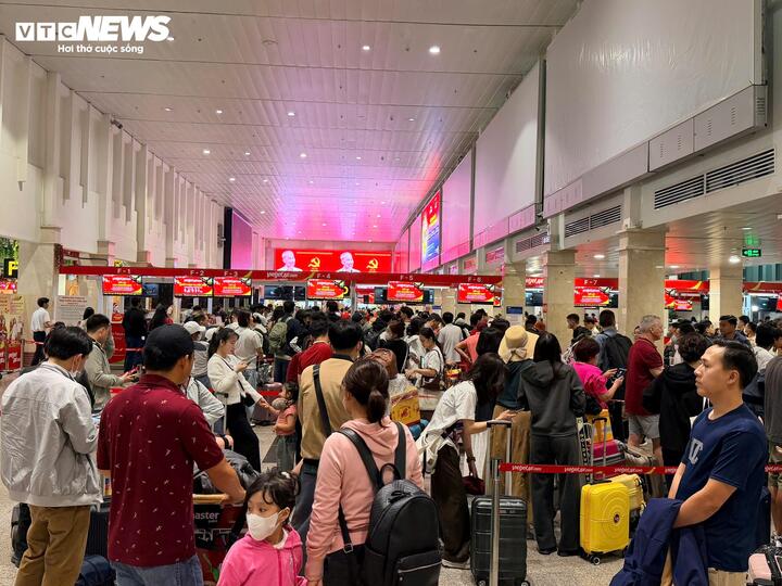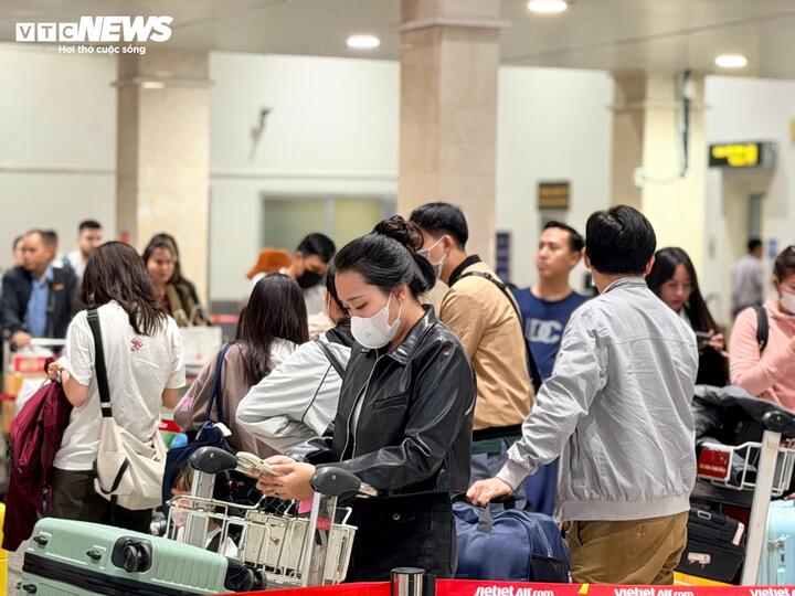 Ghi nhận tại sảnh đi cho thấy dòng người di chuyển liên tục, khu vực check-in luôn duy trì mật độ cao. Nhiều gia đình chọn bay sớm ngay ngày đầu ngày nghỉ để kịp về quê chuẩn bị đón Tết. Nhiều hành khách có mặt trước giờ bay 2-3 tiếng vì lo ngại ùn ứ.